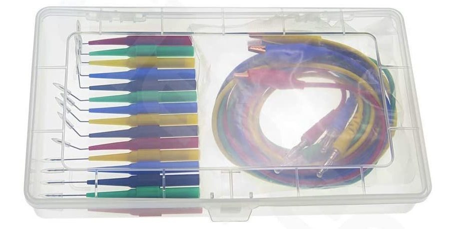 3 Tipos de sonda trasera: las Sondas Traseras de cinco colores ESTÁN Hechas de acero inoxidable y se pueden Medir facilmente en tres Ángulos Diferentes. Aguja fina de 0,028. Se Puede penetrar facilmente para medir v Cuando No es destructivo .; Enchufe de plátano una pinza de cocodrilo: los cables de extensión de enchufe de plátano se conectan rapidamente para permitir Pruebas en Zonas Empotradas, compatible con enchufe Estándar de 0,157 en el párrafo Trabajos de Pruebas eléctricas o de laboratorio, Longitud del cable: 15,7 en .; Clips de cocodrilo: mandíbula abierta: los cables de prueba de Sonda negra cables flexibles de cobre hijo. Las pinzas de cocodrilo ESTÁN Hechas de materiales de Aleación de cobre. Longitud del cable: 3,3 pies Corriente nominal:. 5 A. Conector de plátano: 0.157 in .; Uso Amplio El kit de sonda trasera Se Puede Como utilizar ningún solo para Diagnóstico de automóviles, Reparaciones Y PRUEBAS, chino also in Laboratorios de Física, Escuelas, Hogares e industrias. Las Sondas se pueden Insertar facilmente en los Conectores de automoción y USAR en Conectores de Arnés, inyectores de combustible y Sensores de automoción. Cable de enchufe de plátano una pinzas de cocodrilo: