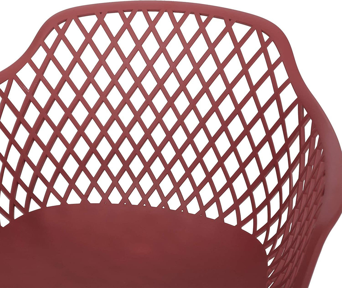 Diseño moderno: con líneas limpias y precisas, nuestras sillas de comedor son el accesorio moderno ideal para tu espacio exterior. Acabado con un patrón de malla de diamante diseñado para transpirabilidad, cada silla no solo ofrece un aspecto elegante y minimalista, sino que también proporciona una estructura increíble.; Resina de polipropileno: creado con polipropileno de alta calidad, especialmente diseñado, nuestro juego de sillas está hecho para ser altamente duradero y resistente a la intemperie. Cada componente individual de nuestra mezcla de polipropileno está específicamente elegido para crear una mezcla única que garantiza que tu producto es de la mejor calidad.; Resistente a la intemperie: nuestro juego consta de material resistente a la intemperie, conocido por repeler el agua y resistir la luz solar. Este juego duradero ofrece un fácil mantenimiento para que puedas pasar todo el verano descansando al aire libre con comodidad.; Dimensiones: elige un accesorio que sea el tamaño perfecto para ti y tus muebles. Cada silla es de 23. 20.0 in de ancho x 21.0 in. 00 pulgadas de profundidad x 32 pulgadas. 00 pulgadas de alto. Te encantará cuánto tu espacio puede transformar con la simple adición de este encantador juego de sillas.; Requiere montaje: este juego de sillas requiere montaje. Todas las instrucciones y herramientas necesarias para el montaje están incluidas. Este viene como un conjunto de cuatro. Color:Rojo