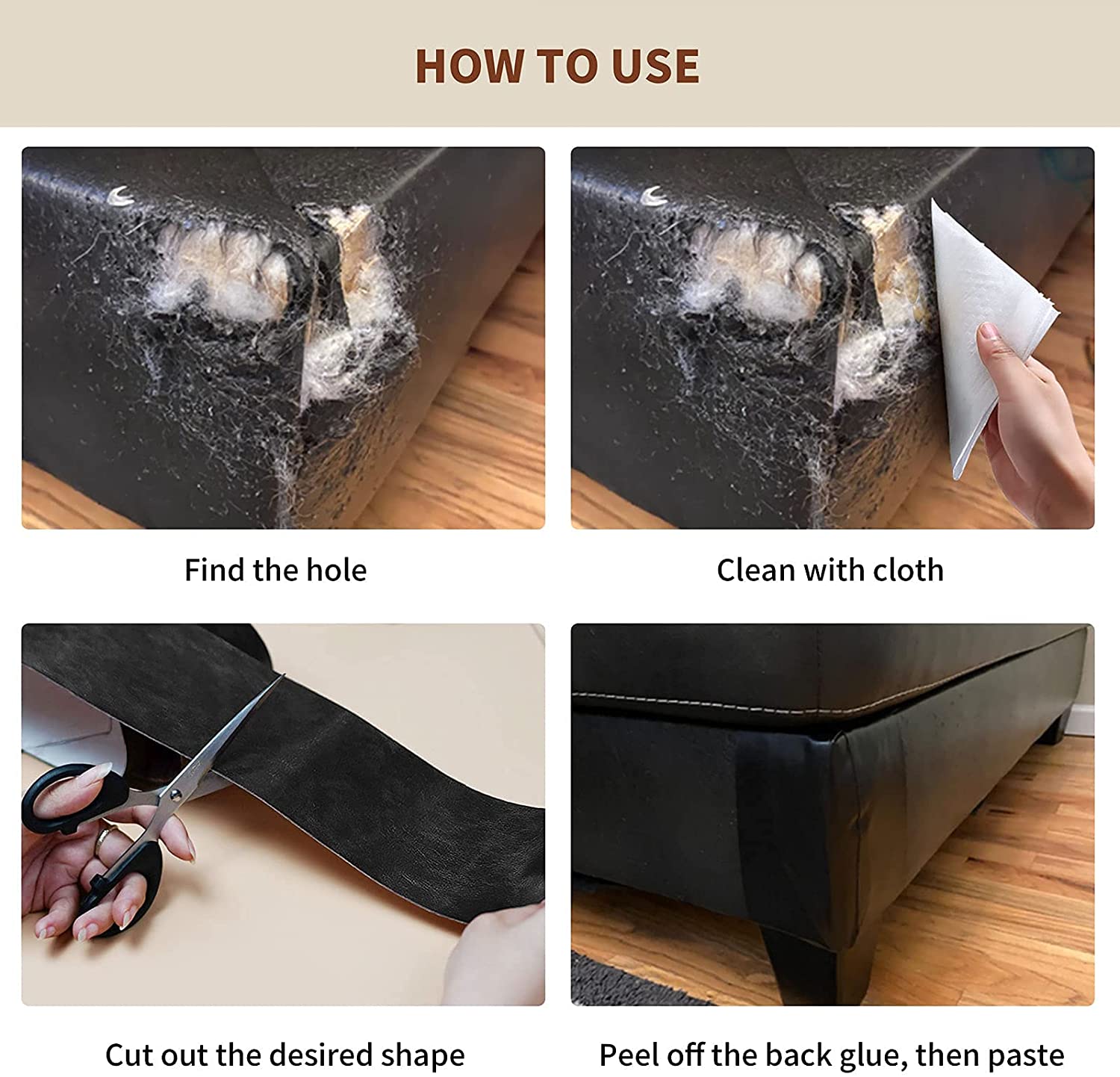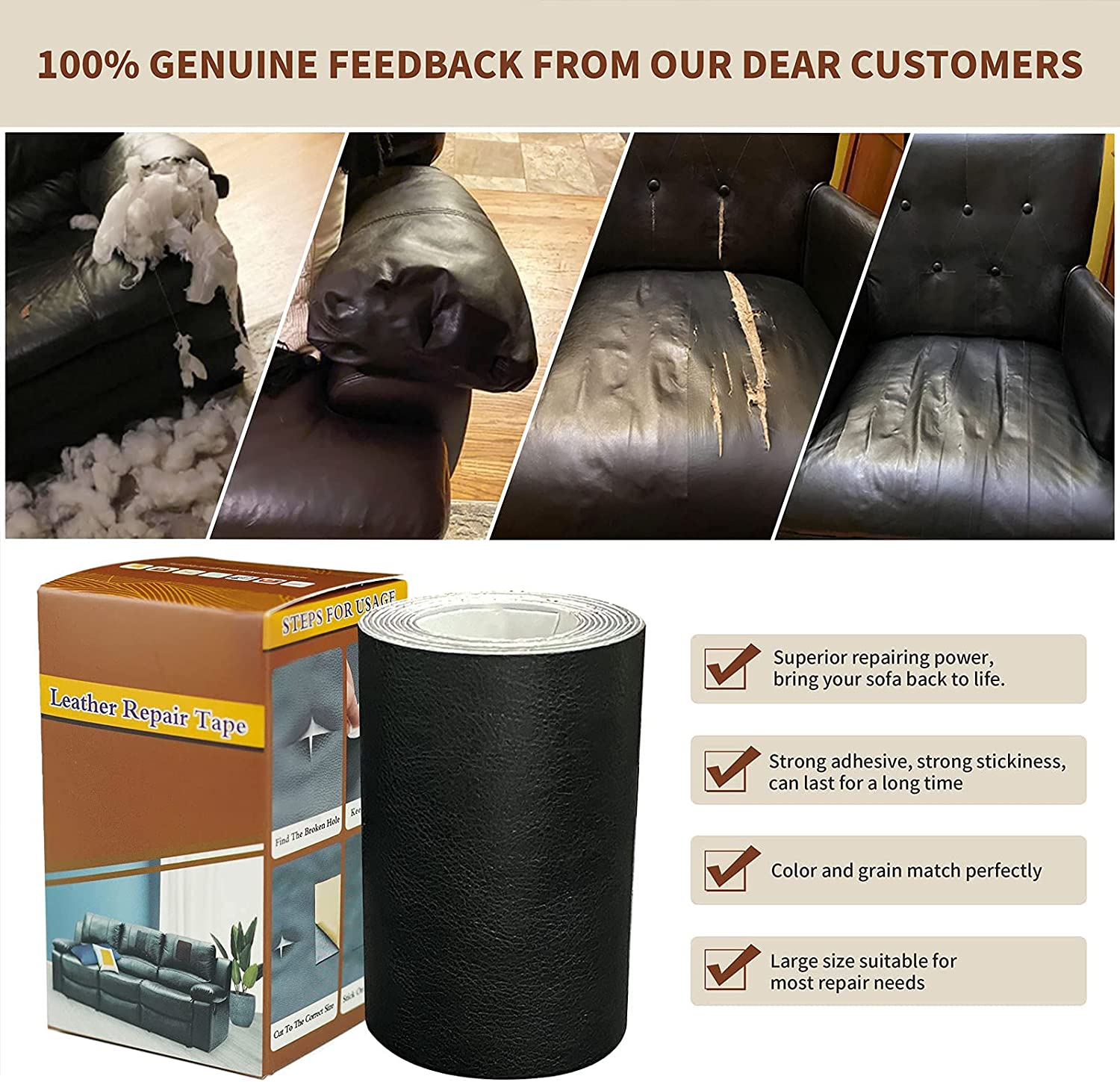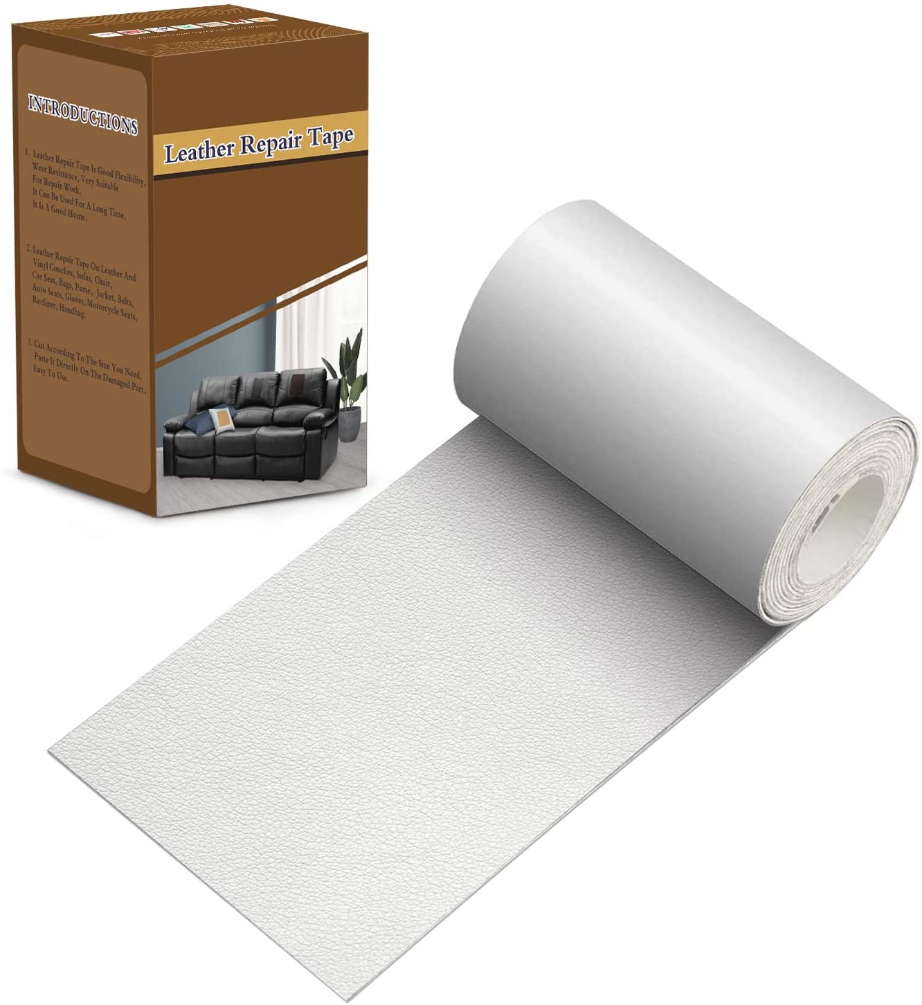 Cinta de reparación de cuero, parche adhesivo de cuero de 3 x 60 pulgadas para sofás, asientos de automóviles, bolsos, chaquetas, parche de primeros auxilios (blanco)