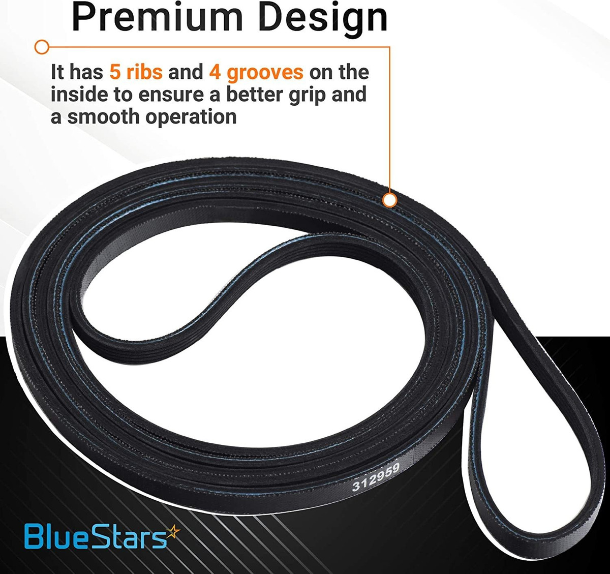 IMPORTANT: Please check the model number carefully before ordering. If youre unsure about the compatibility, send us your dryer model number and we can help you confirm if it fits or not.; % : Customer satisfaction is our priority. If for any reason youre not completely satisfied, you can ask for a replacement or full refund, no questions asked. Buy with confidence!; PREMIUM QUALITY: The replacement part is made from durable high-quality rubber and well-tested by the manufacturer – Ensure long-lasting and stable performance. At 100 inches in length, this dryer drum belt is 3/8 of an inch wide and has five ridges.; EASY TO INSTALL: It is made exactly fit for most top name brands (Whirlpool, Maytag, Jenn-Air, International) and replaces part numbers: 314774, WPY312959VP, Y312959, WPY312959, PS11757542, AP6024192, 3-12959, 3-14774, ER312959.; FIT MODELS: Maytag DE106, DE107, DE110, DE180, DE18CA, DE18CM, DE18CS, DE18CT, DE19CA, DE19CD, DE19CS, DE19CT, DE210, DE212, DE21CA, DE21CM, DE21CS, DE21CT, DE22CA, DE22CS, DE22CT, DE23CD, DE24CA, DE24CM, DE24CS, DE24CT, DE25CS, DE26CA, DE26CD, DE26CS, etc.; SAVE TIME SAVE MONEY: Inexpensive way to fix or repair a dryer. To complete this repair, you will need to remove the front panel as well as the drum. You will need a 5/16 nut driver and a stubby Phillips screwdriver to complete the repair. Be sure to disconnect power to the dryer before you begin this repair. This part fixes the following symptoms: Will not tumble | Noisy | Takes too long to dry | Will not start. Todos nuestros productos estan en inglés SKU 4022219665