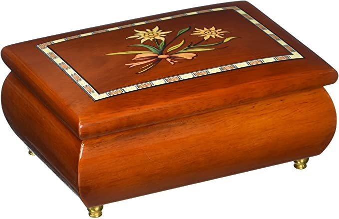 Caja de joyería clásica con Edelweiss en el diseño de marquetería; 4.9 pulgadas de ancho .; Juega melodía: Quiero ser amado por ti; Hermosa idea de regalo! Clásica 4.9 Edelweiss en Marquetería Diseño caja de música Todos nuestros productos estan en inglés SKU 6102020542