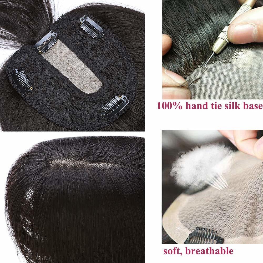 Base de seda tupé para mujer: exquisita de base de seda hecha a mano en el medio, aspecto m naturales del cuero cabelludo, al Igual Que el cabello Que Crece from El Cuero cabelludo humano real; Parte Superior del clip con: con 3 clips antideslizantes para proporcionar Una Fijación segura Pero Cómoda para todo el dia; 100% pelo humano: Puede Ser teñido, blanqueado, rizado, alisado y lavado; Múltiples Funciones: PUEDE proporcionar Cobertura Para La Pérdida de cabello ligero, gris, plateado, blanco o danado en La Corona, o simplemente párrafo: Añadir wolum, INCLUSO Para Salvar tu Línea capilar; 130% de densidad, no grueso muy, SE Mezcla facilmente con tu propio cabello, nadie PUEDE ENCONTRAR Tu Secreto. Tamaño: 12 pulgadas (con flequillo) | Color: # 1B negro natural