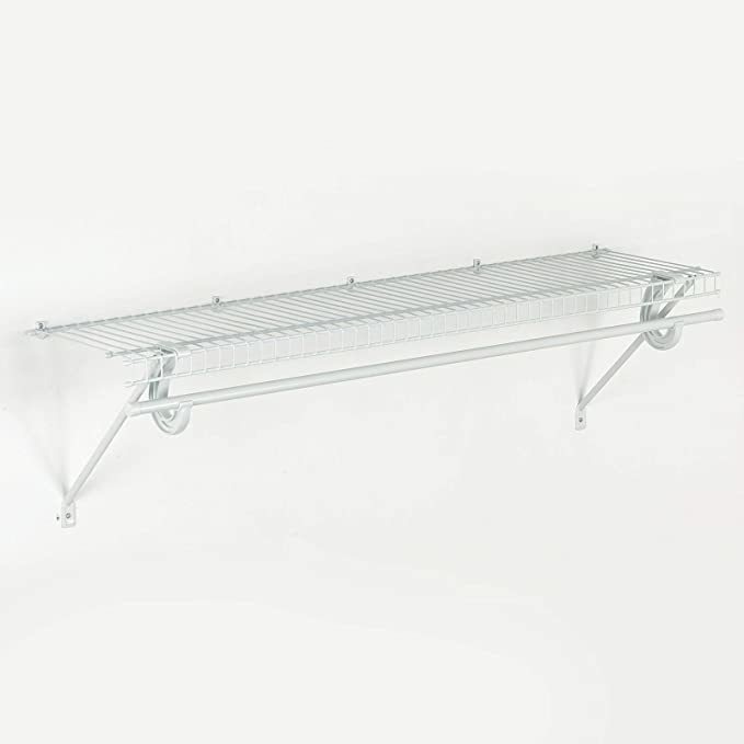 Súper estanterías Slide permite perchas para deslizarse continuamente sin interrupción; Para robustez: NUNCA instalar fijadores de pared de más de 12 pulgadas de distancia, taladro de 1 agujeros / 4 pulgadas en las ubicaciones marcadas (agujeros no puños); Según las especificaciones del fabricante: Capacidad de peso para estante: 40-libras (uniformemente distribuidos), Delta capacidad peso varilla: 15-libras por pie lineal (distribuida uniformemente); Fácil de instalar y perfecto para cualquier habitación, kit incluye: estante de alambre, colgar bar, pasar el soporte de la barra (s) y el hardware de la instalación; Construido de acero recubierto de vinilo, Estanterías es SCS Certified por un mínimo de contenido de 75% reciclado Tamaño: 4 por 12 | Nombre del estilo: Estante Kit