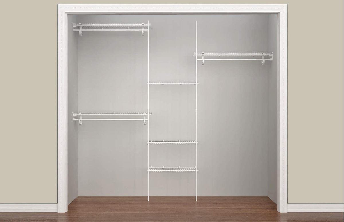 SuperSlide organizador con montaje fijo Hardware – kit contiene todo lo necesario para instalar a 5 pies a 8 pies de ancho del armario y se combina con otros kits de vestidores; Usos durable recubierto de vinilo SuperSlide Estanterías; varillas Cuelgue permiten de cremallera continua; Todo el hardware incluido; Algunos de corte estante y / o varilla puede ser necesario para adaptarse a espacios del armario menos de 8 pies de ancho; contenido de acero recubierto de vinilo, Todos estanterías SCS certificada por un mínimo de 91% reciclado: Material Diseñar: Organizador