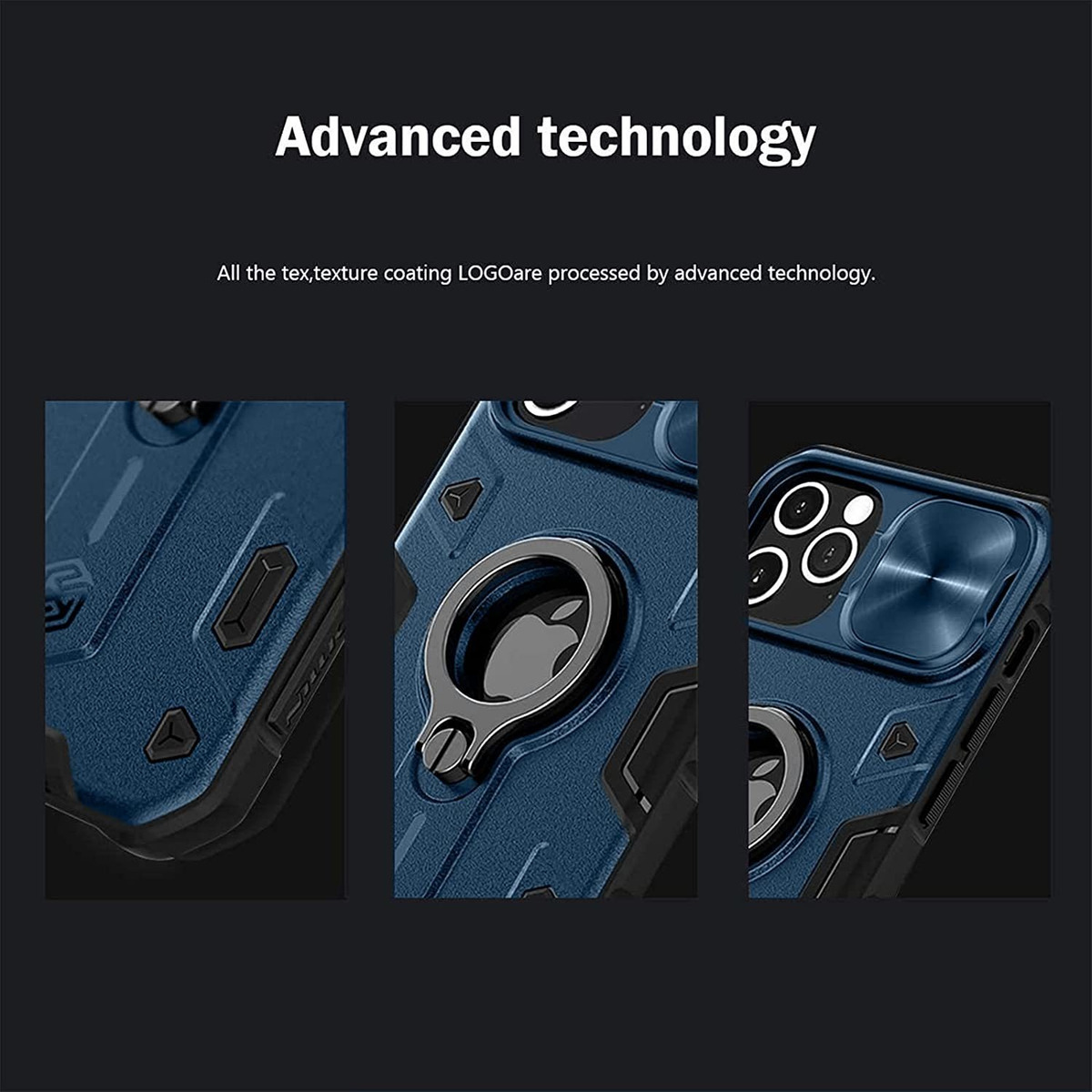 Protege el iPhone 12 Pro Max Diseñado para iPhone 12 Pro Max (de 6,7 pulgadas). Protege tu teléfono contra daños físicos a la pantalla y lente de la cámara. Su textura de neumáticos evita la abrasión.; Anillo giratorio de soporteSoporte giratorio de anillo de 360 integrado, suficientemente resistente. Libera tus manos cuando ves películas, juegas o chateas en línea.; Ventana inteligenteDelicada cubierta deslizante para la cámara, más alta que la lente elevada, ajustada en una ranura. Protección de alta calidad para lente. Rayas en forma de anillo, deslizamiento suave. Cierre ligero en cada lado, no se desliza al azar.; Resistente y de alta calidadHecho de policarbonato y poliuretano termoplástico. Protege contra arañazos, golpes, caídas y golpes. Antideslizante, resistente al agua y al aceite. Protege contra el agua, el polvo y las huellas dactilares.; Diseño de armaduraEstilo genial de tipo militar. También ofrece una fuerte protección. Adecuado para correr, para practicar montañismo, para acampar o para otros deportes al aire libre. Todos nuestros productos estan en inglés SKU 91221081531