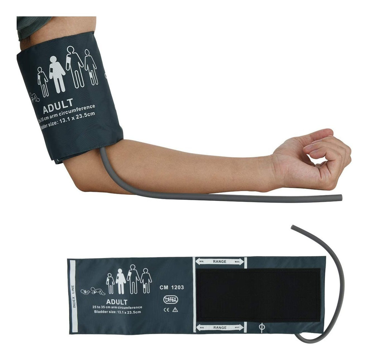 Brazalete de repuesto: reemplaza los puños desgastados o dañados del seguimiento de Presión arterial. (Solo manguito de repuesto, el conector de manguera de aire no esta incluido); Compatible con la Mayoría de Monitores de Presión arterial. (Boquilla no Incluida); Material: nailon / Tubo Único con diseño de vejiga .; Brazalete de Tamaño adulto párrafo Monitor de Paciente o controlar de Presión arterial ambulatoria de 25 a 13,8 en el de circunferencia del brazo. Comprueba el Tamaño Antes de comprar .; Para Un Tamaño correcto, mide la circunferencia de tu brazo un Mitad de la circunferencia Entre el hombro y la articulación del codo. (El conector de manguera de aire / boquilla no esta incluido) Estilo: Tamaño de adulto