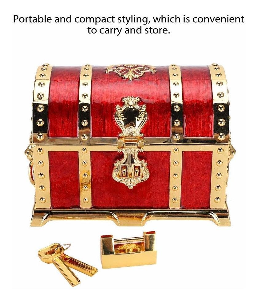 TODO COLOR – cofre del tesoro, en forma de caja del tesoro caja de almacenamiento. Hecho de material de aleación de zinc de alta calidad, es robusto, no oxidante, no desvanecimiento y textura. El color dorado es de color rojo y el color es más vivo, por lo que toda la caja luzca más bella. La apariencia es difícil, no es fácil de llevar, y lo seguirá siendo brillante y brillante durante mucho tiempo .; DULCE DISEÑO – El material del forro de franela es el medio ambiente y suave, y es diseño muy íntimo para proteger mejor su joyería y evitar arañazos. Utilice su caja para guardar sus artículos lejos del polvo y el agua, y para evitar que sus joyas se oxiden y las manchas. Es una excelente opción para la oscuridad, a prueba de humedad y objetos preciosos. Múltiples compartimentos para facilitar la gestión de sus artículos .; EXQUISITO – El estilo retro hace que la caja de la joyería exquisita y hermosa. Portátil y compacto, fácil de transportar y almacenar. Una gran opción para el almacenamiento de grandes cantidades de aretes, collares, anillos y otros adornos. Los compartimentos interiores son desmontables, y también se puede colocar sus objetos queridos como la caligrafía, antigedades y otros objetos preciosos, así como objetos de colección .; CON BLOQUEO DE SEGURIDAD – Use cerraduras y llaves de aleación para guardar sus pertenencias, que le da una mayor tranquilidad y mantener sus pertenencias. Hay brazaletes en ambos lados de la caja, por lo que puede tomar fácilmente su caja de ahorro y esfuerzo. El león-como patrón hace que tu maleta más lujoso y noble .; garantía posventa – Todos los productos que vendemos son de calidad superior, precio asequible y un diseño refinado. Para asegurar su completa satisfacción, ofrecemos a nuestros clientes una política de devolución de 30 días. Si no está satisfecho o confundido, no dude en ponerse en contacto con nuestro servicio al cliente. caracteristicas: