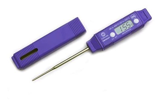 Tipo de producto: Termómetro bimetálico; La conformidad CE: Sí; temperatura Max ( C): 200; Longitud del tallo: 3; Rango de Temperatura ( F): -58 a 400 Este termómetro digital Comark está codificado de color púrpura por alérgenos alimentarios. Ayuda a prevenir la contaminación cruzada y proporcionar seguridad alimentaria. Este termómetro tiene un rango de temperatura de -58 a 400 F, y también puede mostrar las temperaturas Celsius. Tiene una pantalla LCD de fácil lectura con un segundo actualizaciones. Este termómetro también tiene una vida de encendido / botón de apagado para ayudar a preservar la batería. Codificadas por color para la seguridad alimentaria de color púrpura es para alérgenos punta fina, la respuesta en menos de 6 segundos rango de temperatura de -58 a 400F / -50 a exactitud 200C en la zona de los alimentos: 2 F o 1 C Resolución: 0,1 F o 0,1 C lectura de LCD de fácil lectura tiene botón on / off vástago de acero inoxidable de 5 pulgadas tiene la manga de almacenamiento con el clip de batería de 1,5 voltios incluido NSF. Todos nuestros productos estan en inglés SKU 12062118457