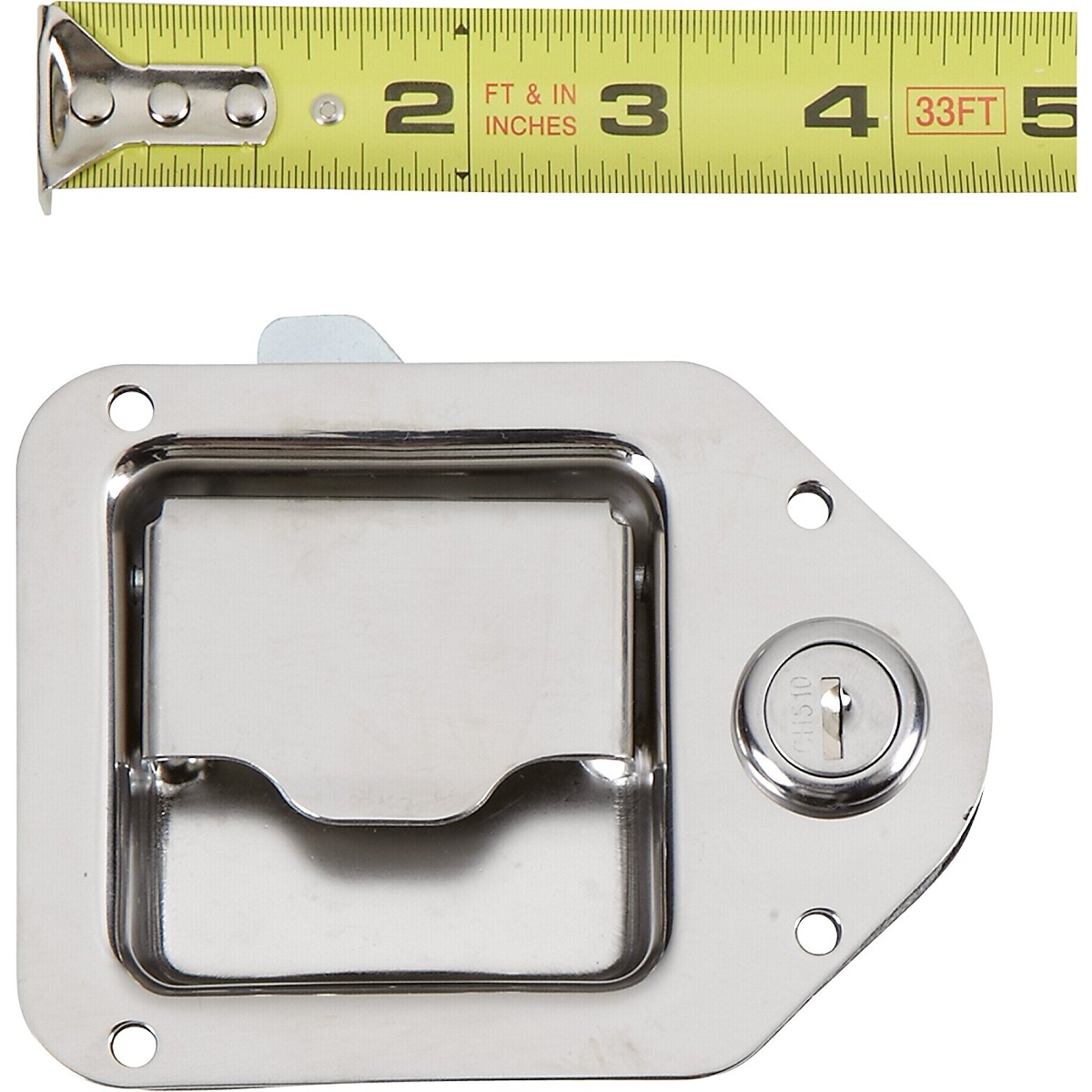 acero inoxidable gota Mini lágrima junta de cierre y llave; Medidas aproximadamente 4 3/8″ x 3 1/4″ de punta a punta; Se monta en la abertura de aproximadamente 2 1/2″ x 2 1/2″ . Ideal para su uso en cajas de herramientas y otras puertas de los compartimentos pequeños. Bloqueo de versión incluye cilindro y 2 llaves. 4 3 / 8in. L x 3 1 / 4in. H x 1 1/2 pulgadas. D. Material: acero inoxidable, llaves incluidas (cant.): Si (múltiple), Pestillo Tipo: (in.) Mini lágrima brida longitudinal, Dimensiones L x W: 4 3/8 x 3 1/4 SKU 8031809510