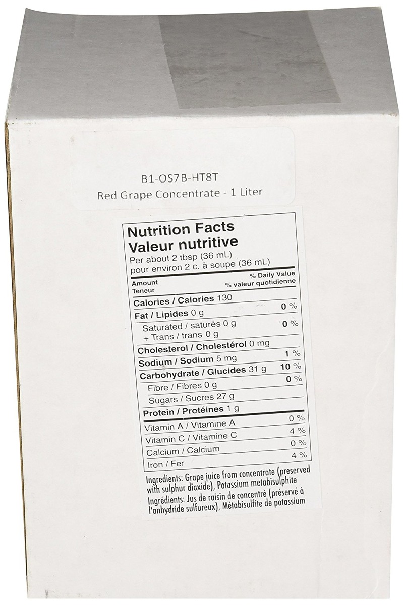 Utilizar el concentrado de uva de vino tinto para añadir color, sabor y dulzor a su vino tinto. Tradicionalmente utilizado justo antes del embotellado para añadir dulzor de nuevo en su vino. Por favor, tenga en cuenta que este jugo no incluye ninguna estabilizadores, lo que significa que puede crear la carbonatación en la botella si el vino no se almacena o se estabiliza adecuadamente. El concentrado de jugo es regular y el Brix es 68. Adicional Filtrado Todos nuestros productos son de Estados Unidos SKU 10011836833