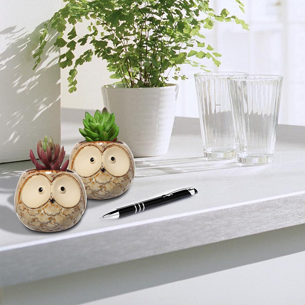 Conjunto De 2 Búho Diseño De La Mini Planta De Cerámica Cont cantidad