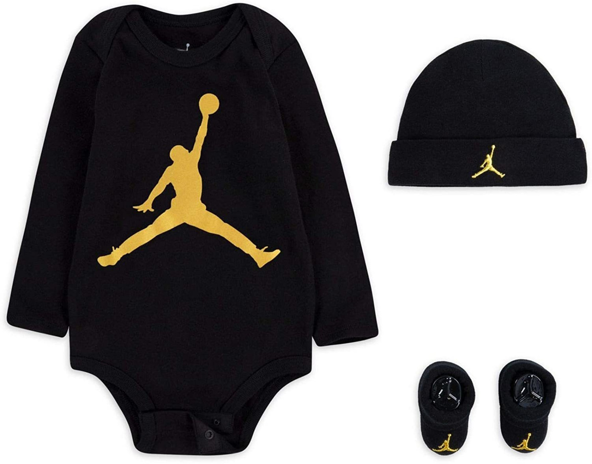 100% algodón; Broche de cierre; 100% algodón; Broche de cierre; El juego Nike cuenta con un traje de manga larga, un sombrero y los botines, cada uno hecho de tejido de punto suave con diseños a juego para comodidad coordinada.; Telas de punto suave para una sensación cómoda.; Los hombros de la vuelta y los cierres a presión en el dobladillo inferior hacen vestirse y cambiar fácilmente.; Body / Sombrero: 100% algodón. Botines: 62% algodón / 34% poliéster / 4% elastano El conjunto Nike incluye un body de manga larga, un gorro y unos botines, cada uno de ellos confeccionado con un tejido de punto suave con diseños a juego para ofrecer una comodidad coordinada. Todos nuestros productos estan en inglés SKU B084L9KXY6