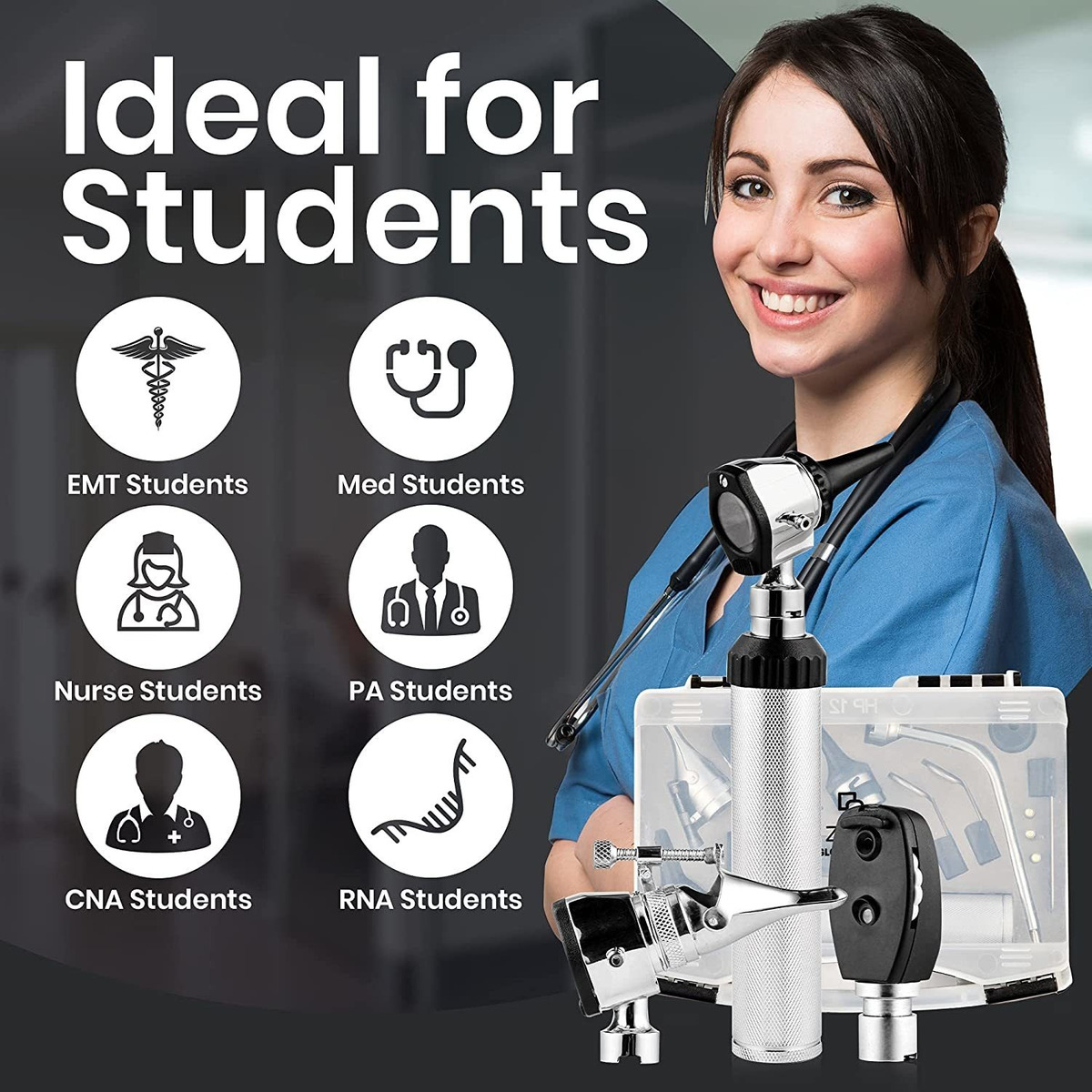 ÁMBITO OJO MEJORADO: Esta es una nueva versión que tiene un accesorio EXAMEN mejor ojo. Perfecto para bricolaje en el hogar ENT visita al médico o enfermera practicante y otros estudiantes de medicina .; Todos los elementos esenciales y MÁS: El kit viene con todos los artículos como se muestra en la imagen – un asa, 3 espéculos auriculares reutilizables, 1 iluminador, 3 espejos, 1 adaptador nasal, 1 rueda de lentes cabeza, 10 espéculos de uso, y los focos de reemplazo. Utiliza 2 pilas C estándar (no incluido) .; MÚLTIPLES FUNCIONES Y LARGA DURACIÓN: La funcionalidad completa para examinar los ojos, la nariz y la cavidad de la boca .; Ideal para estudiantes: Ideal para EMT Estudiante, Estudiante de medicina, enfermera de estudiante, PA, CNA Estudiante, estudiantes y ARN .; La alta calidad y asequible – Donde otros kits de marca tratarán de exprimir tanto beneficio como sea posible, este kit ofrece una alta calidad a un precio asequible que le da más por tu dinero! Tamaño: 34 Piece Set
