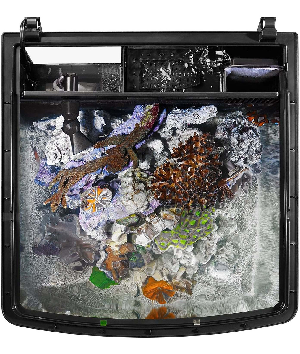 campana moderno y elegante con iluminación LED vibrante; Bisagra-top diseño dosel (también compatible con BioCube 14 y 29); temporizador de 24 horas integrado con tres canales independientes: blanco brillante, espumoso LED azul y color de la mejora de la máxima belleza; funciones 30 minutos la salida del sol automático / atardecer y 60 minutos de la luna / puesta de la luna para replicar el ciclo natural del día; Compacto y personalizable de filtración incorporado – fácil de configurar y mantener. panel trasero de cristal transparente para la configuración refugio fácil; Quiet bomba sumergible, la ingesta dual y boquilla de retorno ajustable Todos nuestros productos estan en inglés SKU 15042010978