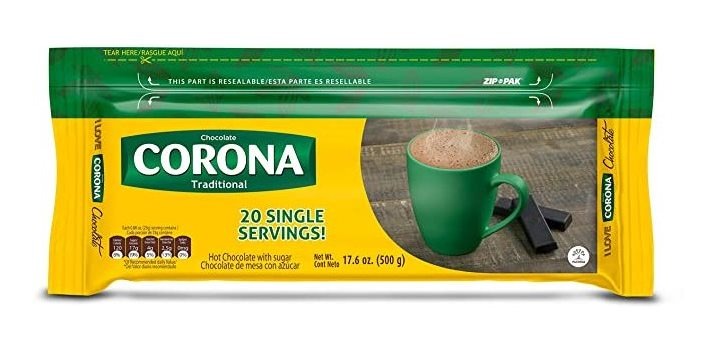CORONA chocolate dulce: Chocolate Corona resellable es una rica barra de chocolate dulce con notas de cata que crea un sabor a chocolate rico e indulgente; Calidad de producto: Hecho con corona real de cacao usando los granos de cacao de origen sostenible; Versátil: Sólo tiene que añadir agua caliente o leche y luego hervir durante una increíble chocolate caliente; GRAN VALOR: Incluye una bolsa de 17,6 oz Todos nuestros productos estan en inglés SKU 21052031970