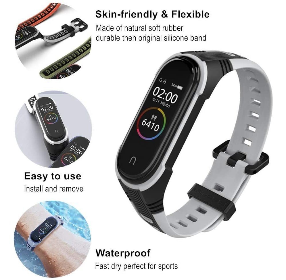 Correa deportiva impermeable: banda flexible, suave y Cómoda de Llevar .; Duradero Material: La Correa this hecha de goma, la hebilla this hecha de plástico, duradera Que la correa original de silicona de Mi Banda 5 .; Tamaño de la correa de 0,630 en: se Adapta un muñecas de 150 a 8.780 en, PUEDES Ajustar la correa facilmente de Acuerdo a tu muñeca .; COMPATIBILIDAD: con compatibles Xiaomi Mi Banda 5 o 6 Mi banda o banda Amazfit 5; Diseño Sin tornillos: Fácil de USAR, del tanto de Instalar Como de quitar. Color: gris