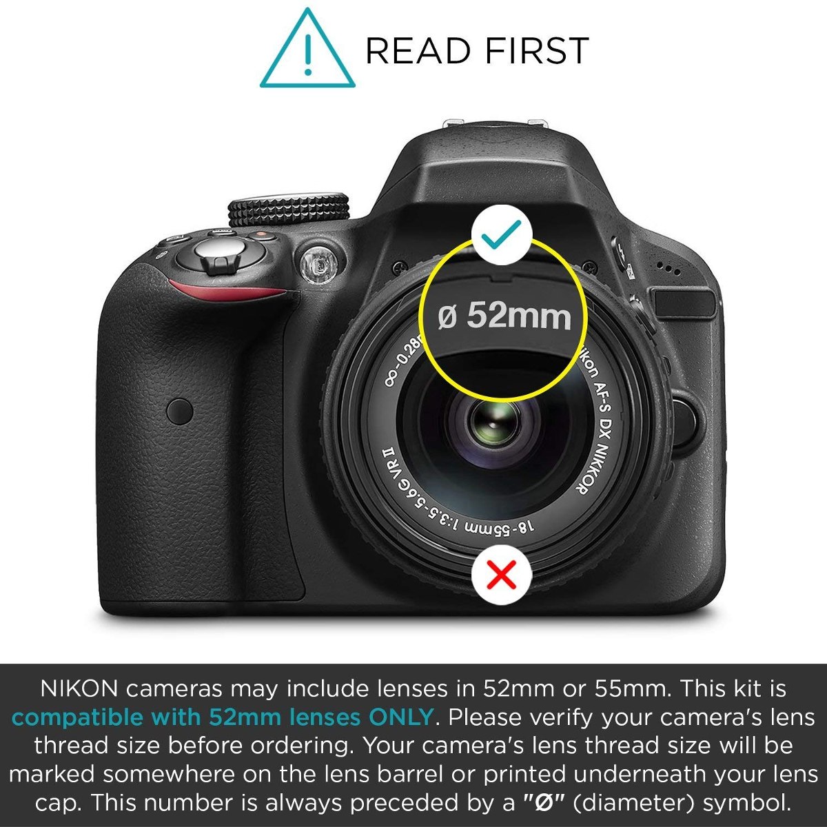 El kit incluye: 52mm Vivitar Juego de filtro (ultravioleta UV, Polarizador circular CPL, FLD fluorescente) + filtro lleva la bolsa + flor del tulipán capilla de lente de + 52mm Altura centro de la foto de la lente pizca w / Cap Guardián correa + MagicFiber microfibra paño de limpieza de la lente; Compatibilidades lente: modelos populares 52mm incluyen NIKON AF-S DX 18-55 mm F / 3.5 a 5.6 VR, AF-S DX 55-200mm F / 4-5.6 VR, CANON EF-M 18-55mm IS STM, Canon EF 50mm f / 1,8 II, Pentax DA 18-55 mm f / 3,5-5,6 AL WR, Canon EF-M 18-55mm f3.5-5.6 IS STM lente sistema compacto .; Modelos de la cámara: NIKON DSLR (D3300 D3200 D3100 D5500 D5300 D5200 D5100) .; También es compatible con la Canon EF 50 mm f / 1,8 II. Sistema compacto EOS M M3 sin espejo de la cámara EF-M 18-55mm IS STM lentes de zoom .; Apoyado con Goja Digital garantía de satisfacción de 90 días 100%. Tamaño: 52mm