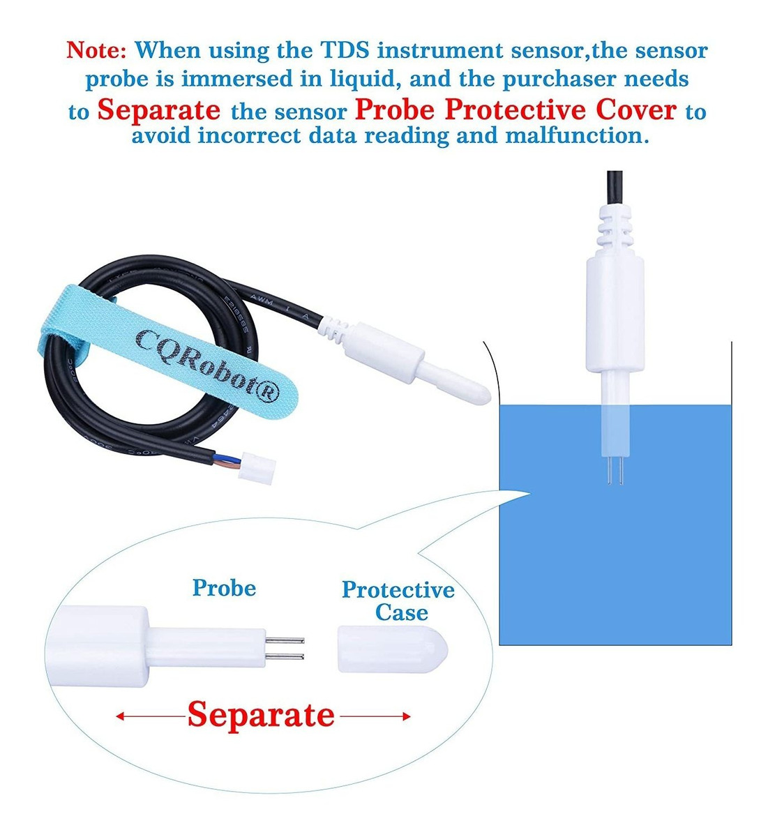 Voltaje de entrada de ancho: 3,3 V a 5,5 V. Buena compatibilidad de la salida: 0 a 2,3 V de salida de señal analógica, compatible con 5V o controlador 3.3V .; AC Excitación Fuente: prevenir eficazmente sonda de polarización, a prueba de agua de la sonda .; Fácil de usar: Arduino compatible, una conexión sencilla, plug and play sin necesidad de soldar .; Se utiliza con ADS1115 16-Bit ADC Módulo (ASIN: B08KFZ3PVT, Modelo: CQRADS1115), compatible con la placa base Frambuesa Pi .; Nota: Cuando se utiliza el sensor del instrumento TDS, la sonda de sensor se sumerge en líquido, y el comprador necesita para separar el sensor de la cubierta protectora de la sonda para evitar la lectura de datos incorrectos y mal funcionamiento. TDS (Total de sólidos disueltos) indica que el número de miligramos de sólidos solubles se disolvieron en un litro de agua. En general, cuanto mayor sea el valor de TDS, los sólidos más solubles disolvió en agua, y la menos limpia está el agua. CQRobot ha puesto en marcha un sensor TDS compatible con Arduino, que puede ser usado para medir el valor TDS de agua después de conectar al controlador Arduino, plug and play.