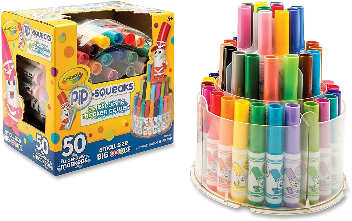 Crayola Pip-Squeaks Telescoping Marker Tower and 50 Crayola Pip-Squeaks markers.