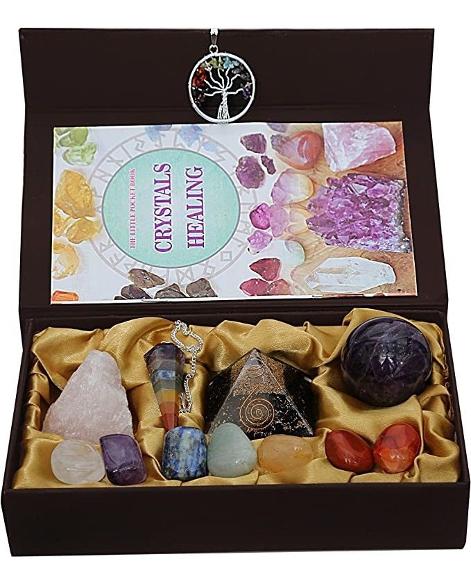 PREMIUM VALOR: Su conjunto incluye algunas de las piedras principales para la creación de una sensación de calma – 1 piedra en bruto, 7 piedras caídas (Claro cuarzo, amatista, lapislázuli, aventurina verde, cuarzo amarillo, rojo cornalina y rojo Jasper), amatista bolas, Rough piedras, Dewsing péndulo, Negro Turmoline Pirámide, Tipo árbol de péndulo y Cuadernillo de 20 páginas. Las fotos son una representación exacta de la calidad de las piedras que recibirá. Cristales varían en forma y tamaño de 1 -1,5 .; Viajamos a la fuente para seleccionar cuidadosamente a mano cada cristal por su belleza y cualidades metafísicas, asegurando que está recibiendo las mejores piedras disponibles .; CURACIÓN HANDCRAFTED – Debido a que estos productos es artesanal, puede haber ligeras variaciones en el tamaño, forma y color en comparación con la imagen que se muestra aquí. piedra preciosa natural, usted recibirá el artículo similar como la imagen se muestra, no exactamente una desde piedra es única .; Bellamente empaquetados y listos para dar como regalo. Incluye caja, un folleto chakra y una guía informativa listado de las propiedades de cada piedra y las instrucciones de limpieza / activación. Excelente para la meditación, la curación chakra, yoga, Reiki, la práctica espiritual, y / o decoración para el hogar .; Se dice para mejorar la suerte en la profesión, así como una excelente para los que están en puestos de dirección. Ponerlo en su sala de estar o en la oficina. Se le ayudará a atraer la riqueza y la prosperidad, el éxito, y todas las cosas buenas. Use su creatividad para organizar las piedras de alambre de cobre y cristal, construir una obra de arte. Tenga en cuenta las ligeras variaciones de color, ya que es un producto natural. Multicolor