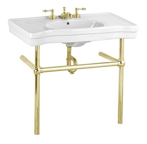 Especificaciones: Cuarto De Baño Blanco Consola Fregadero Con Soporte De Latón