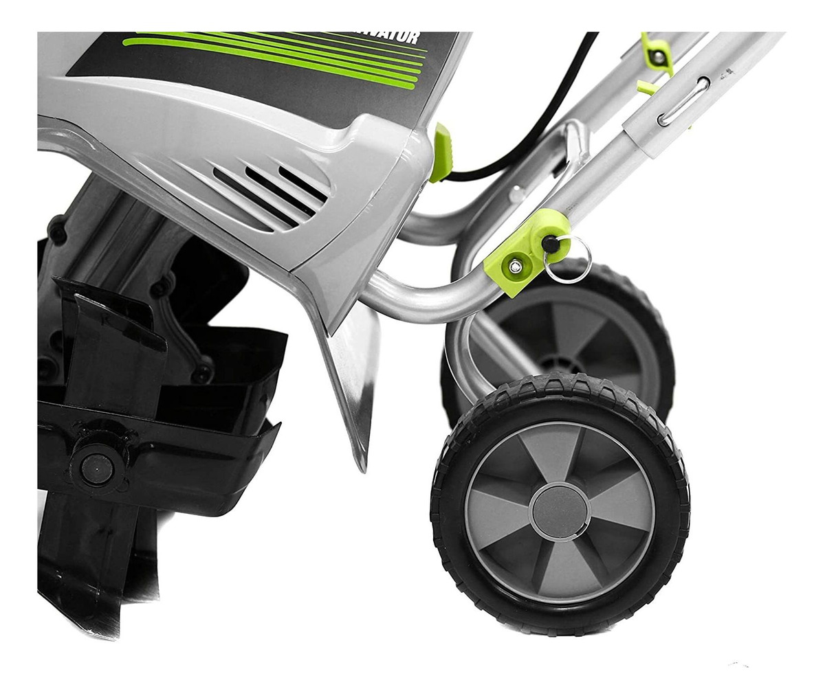 Transporta fácilmente con tapa y ruedas up down; Ancho de corte de 11/8 profundidad de corte; Cuatro púas de acero resistente four-blade Estilo:Corded Tiller Only