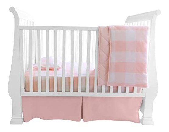 Cuna Sistemas del lecho para niñas – 4 Piezas Incluye hoja de cuna, manta acolchada, cuna del bebé de la falda y la funda de almohada – guinga Diseño en rosa Todos nuestros productos estan en inglés SKU 13082037210