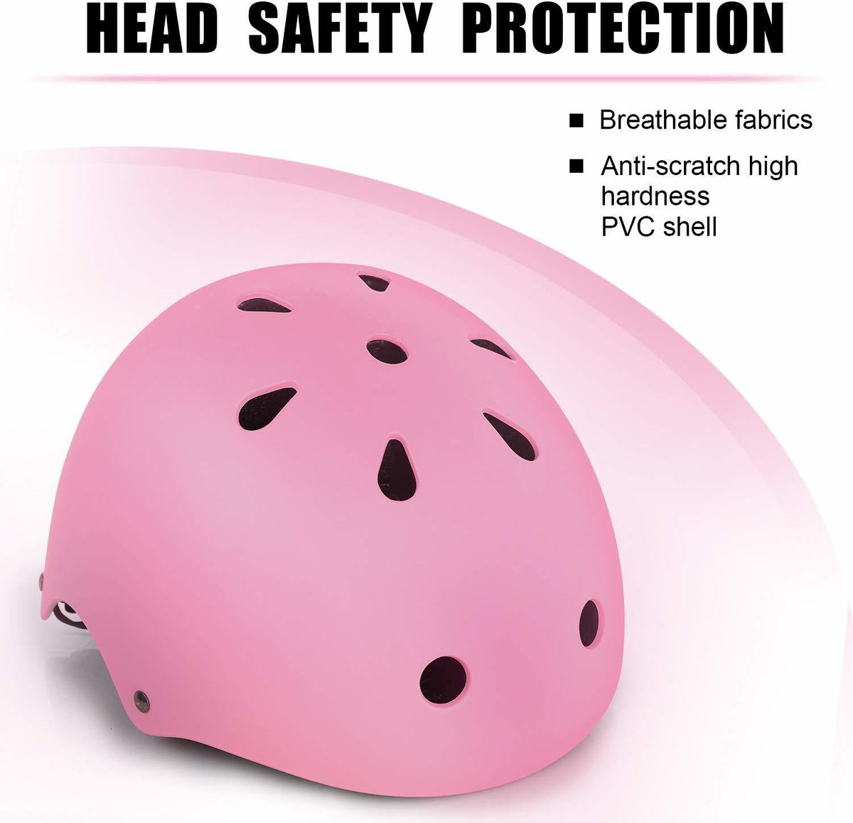 ¿¿ Curso de la vida de servicio al cliente Si ningún problema cualquier pregunta o sugerencias en cualquier momento sobre este cabritos que el equipo de protección, no dude en enviarnos un correo electrónico al vendedor a través de mensajes de Amazon, que le proporcionará buenas soluciones cuanto antes, gracias tanto por su elección .; ¿¿ Tamaño ajustable tamaño pequeño adecuado para 3 ~ 8 cabritos de los años, las muchachas de los 15kg-40kg para el uso de correas elásticas ajustables y largo velcro. Esta circunferencia de la cabeza del casco también se puede ajustar 18.89inch a 21.26inch. Es la clave para que se sienta cómodo mientras que los deportes .; ¿Maravilloso¿ Materiales Adoptado anti-arañazos alta dureza PVC shell rellena con material suave EVA. Esos revestimientos de alta calidad no sólo son duraderos durante muchos años, pero también transpirable. Adoptado tejido ventila para mantener fresco y limpio, mientras que en bicicleta, a caballo, en bicicleta y skate .; ¿¿ Equipo de Protección Multifuncional Los niños casco y coderas rodilla con guardias del wirst están diseñados para la protección de los niños deportes saftey especialmente para patinaje sobre hielo y el rodillo de bicicleta, monopatín Hoverboard, ciclismo, ciclismo, patinaje, laminados, ATV, BMX y otros deportes extrem. Nuestro objetivo es mantener a nuestros hijos lejos del dolor cuando disfrutan de la alegría de los deportes .; ¿7¿ conjuntos de engranajes de protección proporcionados con la bolsa de almacenamiento, incluyendo 1 1 casco, 2 niños muñequeras, rodilleras 2, 2 cojines de codo incluido. Es fácil de llevar el juego de niños con equipo de protección que para otras actividades al aire libre. Los niños siempre son animado y lleno de energía, deportes también son muy importantes para los niños, por lo tanto, la cabeza, las articulaciones y los terneros deben estar mejor protegidos con equipo de protección adecuado y fiable durante las actividades al aire libre.
