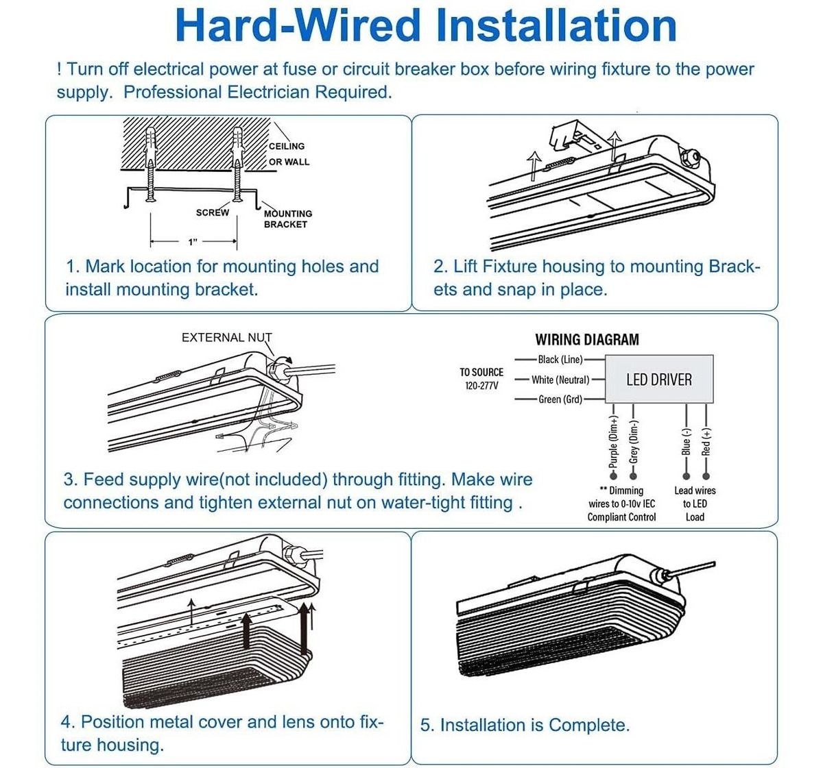Eficiencia energética: alimentado por solo 60 vatios en total a 6600 lúmenes, la lámpara sellada de 4.0 ft produce grandes cantidades de luz a un costo de ahorro de energía, reemplazo perfecto para halogenuros metálicos de 120 200 vatios o fijación fluorescente y sin balasto para reemplazar.; A prueba de agua: calificación IP 66, carcasa de policarbonato no corrosivo (PC), cierres y clips de acero inoxidable, esta luz LED de 4.0 ft a prueba de intemperie está diseñada para zonas húmedas, húmedas y con polvo. Atenuación de 0 a 10 V cuando se empareja con un regulador de intensidad compatible (no incluido).; Amplia aplicación: ampliamente utilizado en lavado de coches, almacén, granero, congelador, estación de servicio, estacionamiento y cocina industrial, escaleras, túnel, patio al aire libre donde la humedad es una preocupación.; Fácil de instalar: soporte de montaje y tornillos incluidos para montaje en superficie de pared. También hay una pasamuros y un adaptador de conducto proporcionado para conexión de cable impermeable (cable no incluido).; Compra con confianza: con certificación UL, la lámpara lineal a prueba de vapor Dakason cumple con estrictos criterios de eficiencia, calidad y de por vida. LED sin mantenimiento con 50.000 horas de vida útil. 5 años de garantía. Si hay cualquier problema con nuestro producto, por favor póngase en contacto con nosotros. Todos nuestros productos estan en inglés SKU 4022219112