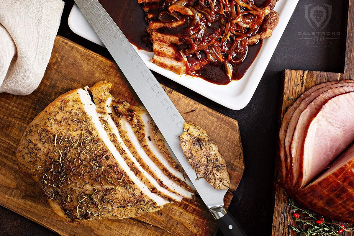 Una revolución culinaria Dalstrong que combina una artesanía excepcional y galardonada, tecnología innovadora de vanguardia, diseño impresionante y los mejores materiales disponibles. El máximo rendimiento nunca se ha visto tan bien a este precio.; Rendimiento sin igual: el borde de bisturí despiadadamente afilado está acabado a mano en un impresionante ángulo de 8 a 12 grados por lado. Refrigerado con nitrógeno para un mayor arnés, flexibilidad y resistencia a la corrosión. Espiga completa para una excelente robustez y triple remachado para aún más resistencia. Esta hoja larga ofrece una versatilidad sorprendente y es adecuada para una variedad de tareas, incluyendo tallar asados, cortar barbacoa, shawarma, salmón, preparar grandes frutas y verduras como calabaza, calabaza y sandía.; Potencia Dalstrong: ultra afilada AUS-10 V, núcleo de corte de acero japonés tratado al vacío a 62 dureza Rockwell para un rendimiento extraordinario y retención de bordes. 67 capas de acero inoxidable de alto carbono para una resistencia excepcional, durabilidad y resistencia a las manchas. Este cortador de diseño único cuenta con un vientre ligeramente curvado y una punta más estrecha, lo que permite una maniobrabilidad inesperada para la longitud.; Diseñado a la perfección: el mango G-10 de alta calidad es resistente al calor, frío y humedad. Grado militar con durabilidad de por vida. Mango ergonómico pulido a mano diseñado para un control de mano superior, agilidad y comodidad. Crea rodajas largas, delgadas y uniformes sin rasgar o triturar en una sola pasada fácil.; Dalstrong Trust: sabemos que te encantará. 100% satisfacción o garantía de devolución de dinero, pruébalo sin riesgos. Garantía de por vida contra defectos. Famoso servicio de atención al cliente Dalstrong. Ve por qué chefs, carniceros, panaderos, estudiantes culinarios y cocineros caseros de todo el mundo confían y aman La diferencia Dalstrong. Ahora estás rebanando con potencia. Potencia Dalstrong Todos nuestros productos estan en inglés SKU 91221044007