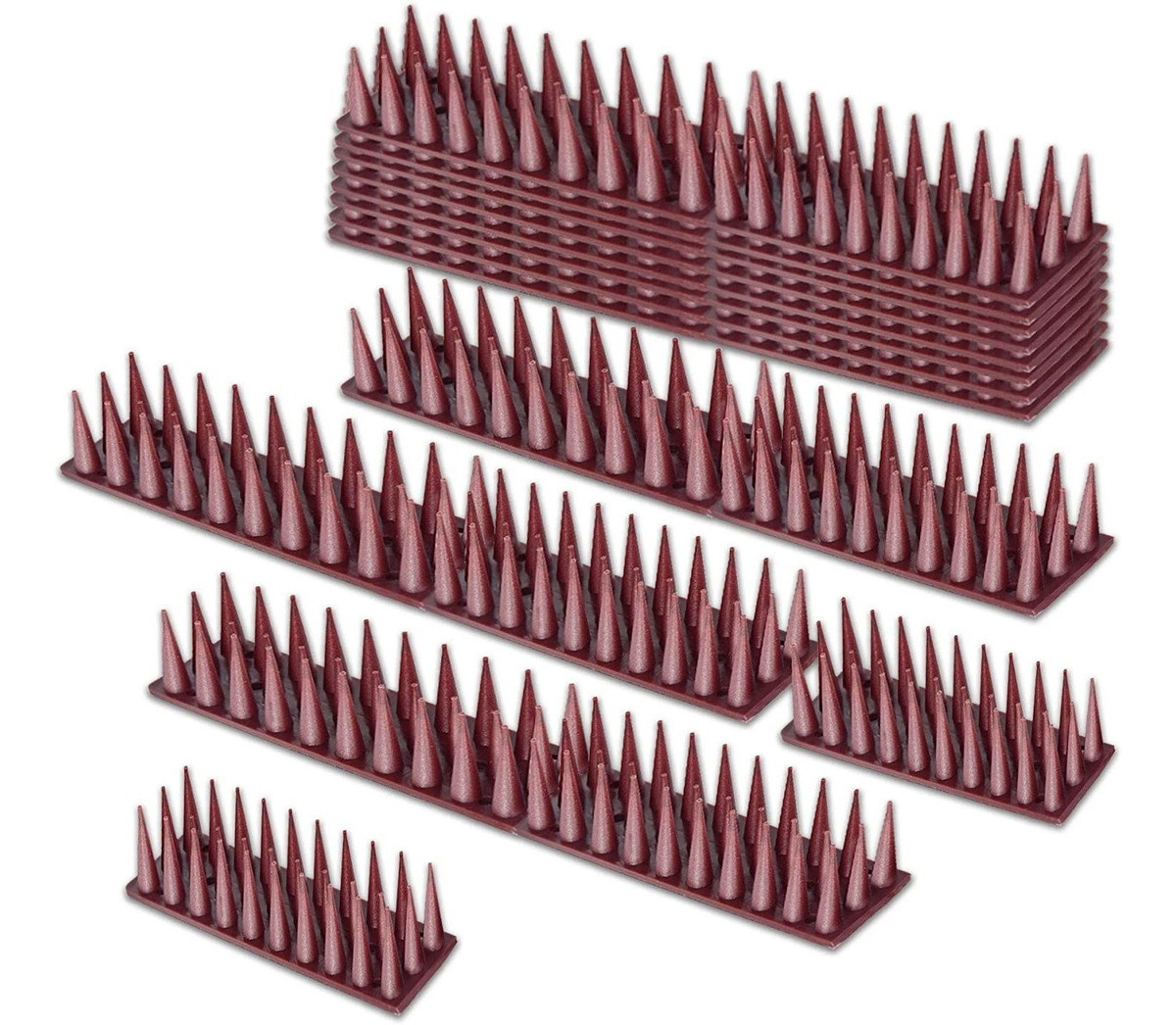 Pinchos de seguridad antiescalada: no más yardas de astillas fijadas en cables de hormigón o afilados o alambres de afeitar para dañar a un animal o incluso a un ser humano, más bien un método eficaz para evitar que se escalen sobre una pared límite o cruzen una línea; Diseño mejorado: la longitud de la punta se ha duplicado en comparación con productos similares, cada tira de plástico mide 17.3 x 5.3 x 1.6 in; Hecho para todos los entornos: nuestros pinchos disuasorios están hechos de plástico de polipropileno duradero de alta calidad que es excelente para todos los climas.; Se instala en cualquier lugar: estos pinchos repelentes de gatos son fáciles de instalar en cualquier superficie plana (vallas, barandillas, techos, cobertizos, paredes, puertas, repisas, etc.); Eficaz espigas de prevención de intrusos – Los pinchos de seguridad anti escalada repelen de forma segura sin dañar a los animales El material real es un buen ayudante para evitar que las aves se acerquen a las ventanas y vallas
