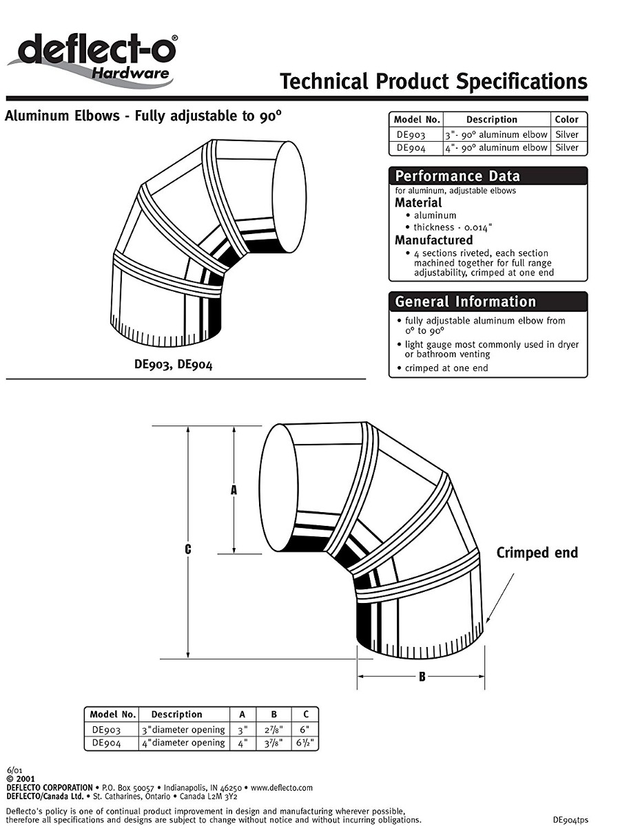 Specification: Deflecto Aluminio Dryer Vent Codo, Totalmente Ajustable, 4