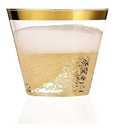 9 oz. vasos de plástico transparente con borde de oro