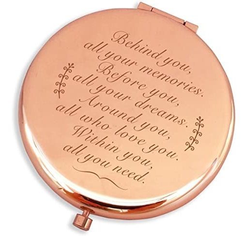 –FAREWELL RECUERDO -. Detrás de ti, todos sus recuerdos;., Antes de que todos sus sueños; a su alrededor, todos los que te aman; dentro de ti, todo lo que necesita Qué mejor manera de mostrar a sus amigos o compañeros de trabajo que salen bendición y anhelo con este espejo de viaje .; Esta calidad-espejo viajes –Alta es de alta calidad material de pulido con el medio ambiente. Es un espejo de maquillaje profesional de calidad. 2.6 de diámetro, 0,45 de espesor. Lo que nos vino muy bien empaquetado en una caja de regalo delicada .; Nos –Regalo IDEAS– los creativos de la novedad de viaje espejos con refranes clásicos que hacen los regalos clásicos para las mujeres, madre, suegra, cuñada, hija, hermana, abuela, tía, esposa, novia, amantes LDR, maestro, compañero de trabajo, jefe, niñas, jubilado, enfermera, etc. –MAGNIFYING- Un lado del espejo 2X Ampliación viajes por cerca de depilación con pinzas o la aplicación del maquillaje 1x visión verdadera.
