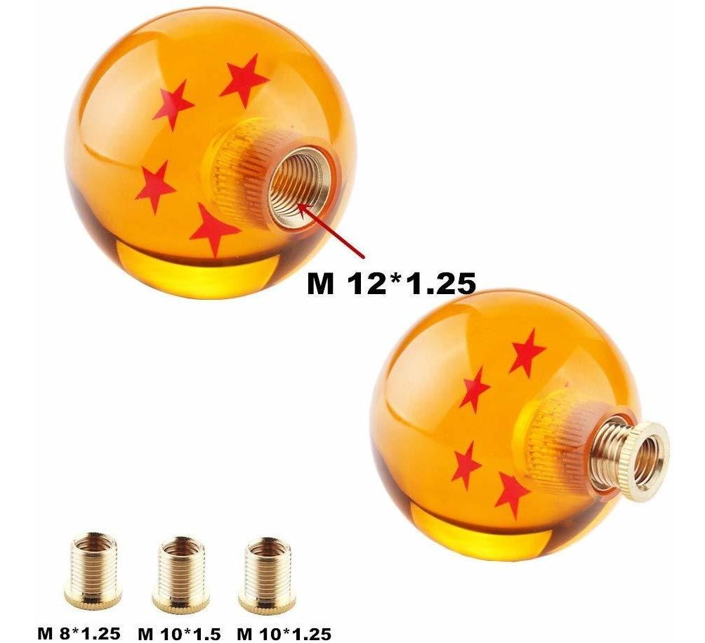 Interior del coche Accesorios de Dragon Ball Z estrellas pomo de cambio Se adapta muy bien en la mano. 54 mm de diámetro, hecho de acrílico de alta calidad duradera, artículo hecho a mano; Shift encargo mando bueno para la mayoría de Acura de Honda Infiniti Lexus Mazda Mitsubishi Nissan Subaru Toyota Scion, etc y bueno para cualquier transmisión manual o automática de 4 5 6 palanca de cambios de velocidad (no queda en cambiadores automáticos con pulsador, se adapta al estilo cerrada solamente); Racing JDM Crystal Shift mando citado Tamaño de la rosca es M12x1.25, Con los adaptadores de cobre roscado 3: M8x1.25 M10x1.5 M10x1.25. Manual de palanca de cambios Perilla protagonizada bola redonda Instalación Nota: Nunca toque fondo la palanca de cambios en la palanca de cambios al apretar. Tocar fondo puede romper la perilla! Tocar fondo puede dañar el mando que no está cubierta por la garantía !; Pomo de cambio montaje Paso de rosca: ajuste en la mayoría de los vehículos con transmisión automática. Y sobre todo Chrysler manual, Dodge Magnum, Ford Pantera.all manual de Mitsubishi, Hyundai, Ferrari, más Nissan / Infiniti y más modelo de Mazda y transmisión automática Subaru.all manual de Honda / Acura, Cherokee y Jeep Wrangler (TJ) ’97 – ’06 .Manual Ford Mustang 2005-2014, automático piloto de Honda, Todo manual de Lexus en todo el manual de Subaru, y más transmisión manual de Toyota / Scion .; perilla súper dragon ball z cambio es su regalo mejor compra de coche para los accesorios de tuning de automóviles divertido – las piezas del coche de carreras, si no está seguro de si esto palanca de cambios se ajuste a su sensación de coche libre de mensaje el año, marca y modelo de su coche y lo haré tratar de confirmar por usted. Color: 6 ESTRELLAS