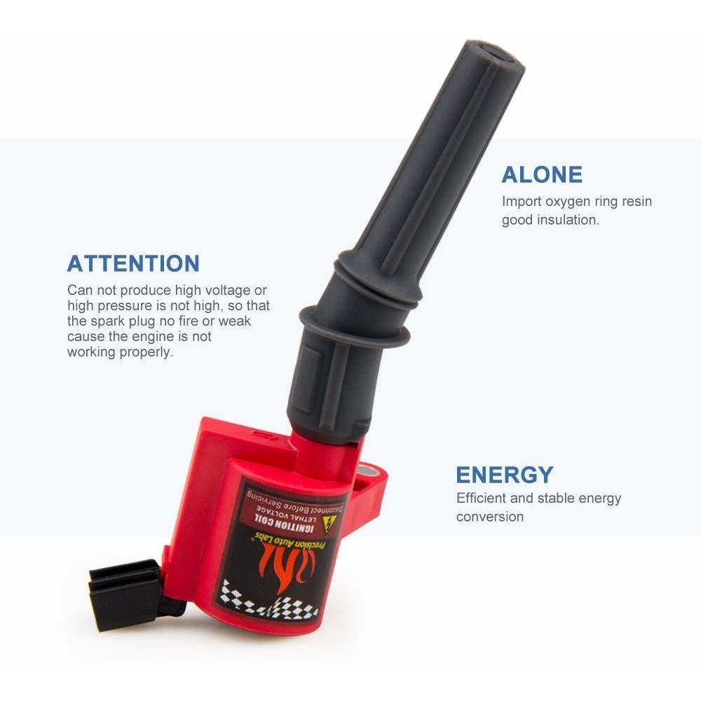 ALTA CALIDAD ESTRUCTURA INTERNA – Nuevas bobinas de encendido se hacen con alta calidad de aislamiento de epoxi, hilos de cobre importado de Alemania, muelle de acero inoxidable con núcleo de ferrita, 550 grados y 40000V de silicona Boot, Specialized núcleo de acero con Optimized devanados, alta vibración, la vivienda resistente a los golpes. son durables y confiables .; Reemplazo directo y ACTUALIZACIÓN – bobinas de encendido de chispa deben ser reemplazados cada 100.000 millas o cada 10 years.Best para reemplazar sus existencias encendido originales coils.Strong de tapones, y ser resistentes a la corrosión y la abrasión .; CURVADO BOOT-Adecuado para Ford 4.6L 5.4L V8, Lincoln y Mercury incluyendo Crown Victoria, E-150, E-250, E-350, E-450, E-550, Econoline, Excursión, expedición, Explorer, y F -150, F-250, F-350. Por favor, lea la descripción antes de comprarlo ya que la parte puede cambiar en función del año / mes de fabricación de su vehículo .; NO MISFIRE- Eliminar fallos de encendido del motor y la vacilación, sin reventón chispa en alza más alta; Compatible con DG508 DG457 DG472 DG491 DG540 FD503 DG467 DG473 DG481 E213 E262 E409 IC369 F523 5C1412 GN10164 FD79 13.062.237 1.972.290 1L2U12029AA 1L2U12A366AA F7TU12A366AB F7TU12A366BA F7TU12A366CC F7TU12A3 F7TZ-1029CC FZTZ-12029CA 21941485 21941505 3W7Z12029AA 71HM12300AA 52-1761 Todos nuestros productos estan en inglés SKU 601200171