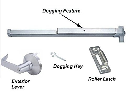 el tamaño real del producto: 31 pulgadas, se ajusta a las puertas de 30″ a 36″ de ancho – Se puede cortar al tamaño .; Reversible, no incluye la cerradura – Pánico Hardware – Con exterior con llave de palanca; Dinastía de hardware de la serie 500 de dispositivos de angustia con Dogging Característica; Acabado Aluminio – Dispositivo de pánico; Garantía de fábrica de por vida – Limited El hardware dinastía Grado 2 Heavy Duty Lamer Comercial Dispositivo de salida para 30″ hasta 36″ Puertas.