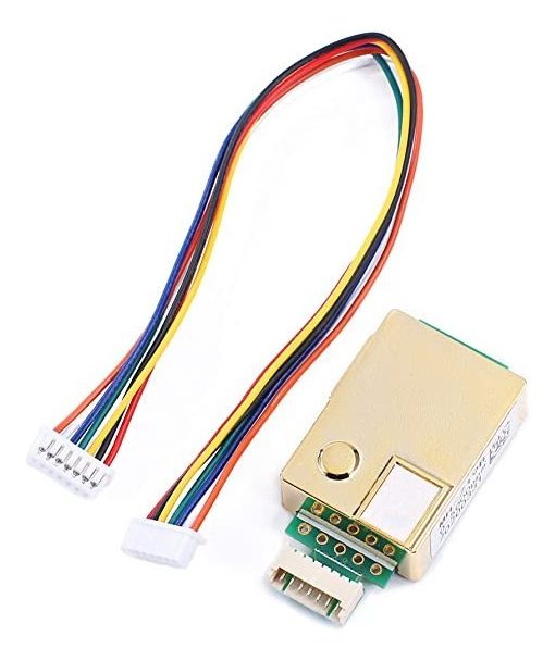 Parámetros del producto número de modelo 1. Producto: MH-Z19B 2. Detección de gases: Dióxido de carbono 3. Tensión de alimentación: 4,5 5,5 V DC 4. corriente media: 20mA ( 5V fuente de alimentación) 5. Pico de corriente: 150 mA ( alimentación de 5V) 6. Interfaz de nivel: 3,3 V (5V compatible) 7. rango de medición: 0 10.000 ppm pueden ser seleccionados dentro de la señal de salida rango 8.: serie (UART) (TTL 3.3V nivel) de salida PWM analógico (DAC) ( por defecto 0,4 2V) (0 3V cubre configurable) 9. tiempo de calentamiento: 0 50 C 12. Humedad de funcionamiento:: 0 a 95% HR (no 3min 10. tiempo de respuesta: 11. temperatura de trabajo T90 120s -condensing) 13. Peso: 5g 14. la vida: 5 años Características del sensor 1. cámara de gas con el chapado en oro, impermeable y resistente a la corrosión 2. alta sensibilidad, bajo consumo de energía 3. excelente estabilidad 4. la compensación de temperatura, excelente salida lineal 5 . Proporciona serie (UART), analógico (DAC), los métodos de salida de forma de onda PWM de larga duración 6. 7. interferencias de vapor de agua, no envenenar Aplicación HVAC equipo de refrigeración de monitoreo Atmosférico equipme sistema de aire fresco nt equipo de purificación de aire Smart Home ESCUELA Todos nuestros productos estan en inglés SKU 12062121271