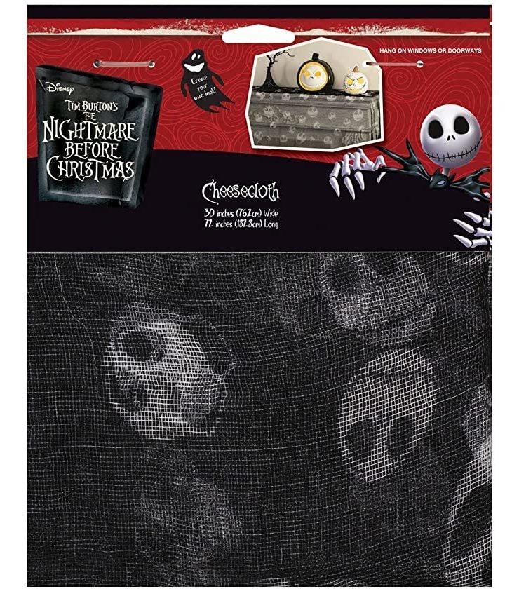 Esta Jack Skellington temática medidas estopilla 72 x 30 (6 pies x 2,5 pies) y es ideal para cubiertas de mesa, ventanas y decoración de la pared. Lágrima, corte y el material refriega para crear su propia mirada espeluznante. Se trata de un producto con licencia oficial de Disney. Todos nuestros productos estan en inglés SKU 29102029247