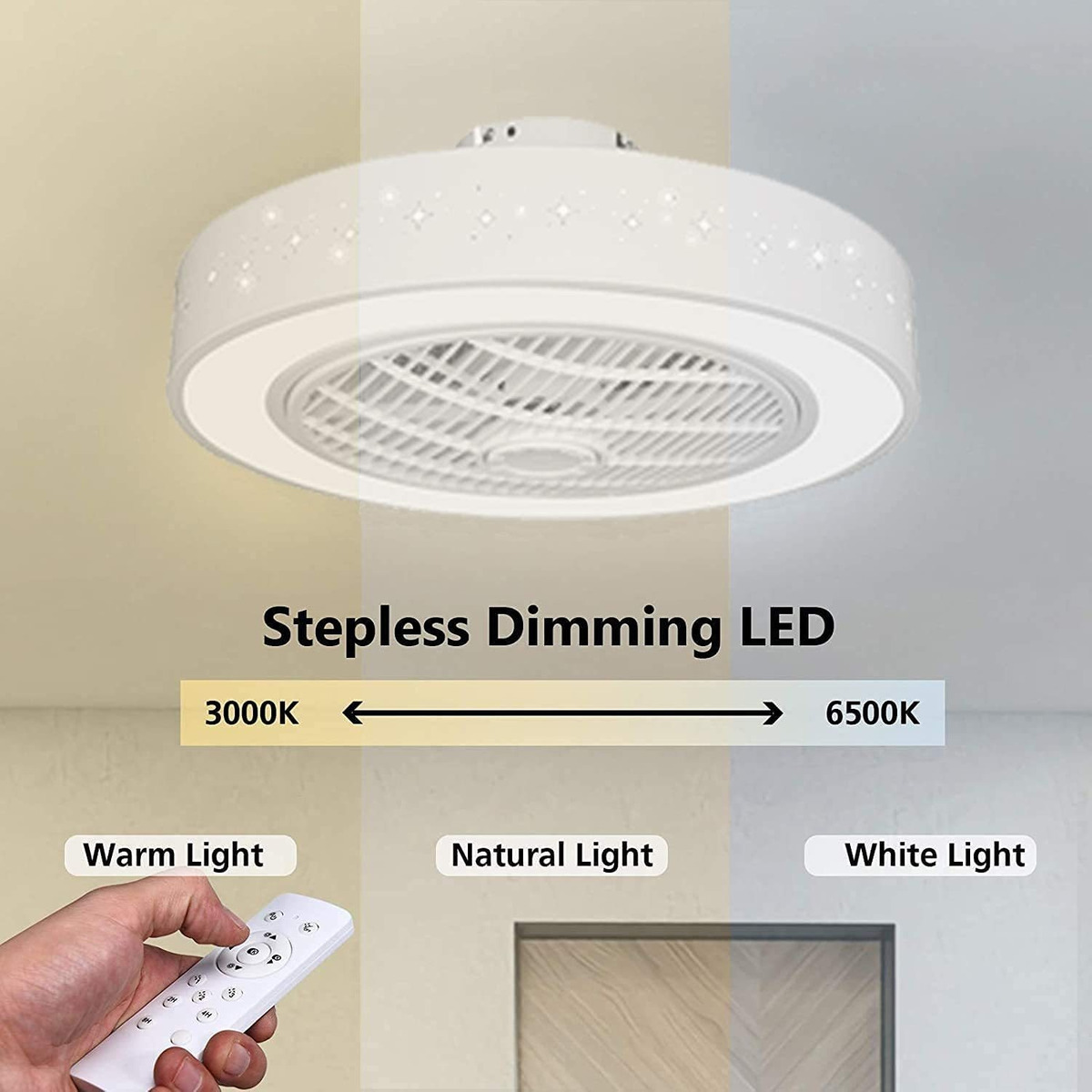 Lámpara de techo 2 en 1 con ventilador Iluminación LED de montaje semi empotrado con ventilador, ahorra espacio y también tu dinero. Ancho de la fijación: 19.7 x 7.9 in; rango de iluminación: 15-30 ; vatios: 6 W x 2. Tamaño perfecto para dormitorio y sala de estar, aspecto agradable, resistente, estable, hermoso y duradero, muy fresco y encantador.; 3 luces de colores regulables y temporizadorPuedes configurar la luz LED para luz blanca, luz cálida o luz neutra, diferentes colores de luz para diferentes necesidades. Se puede ajustar para apagar automáticamente en 1 a 4 horas, lo que facilita descansar sin preocuparte por perder dinero.; 3 ajustes de velocidad del vientoPuedes ajustar la velocidad del viento del ventilador para el modelo de 3 velocidades, la baja velocidad es adecuada para dormir, la velocidad media es adecuada para uso normal, alta velocidad adecuada para climas más cálidos. 3 métodos de ajuste de velocidad, siempre hay uno que puede satisfacer tus necesidades, control remoto inteligente a 16.4 ft de distancia, fácil de poner y quitar.; Material de alta calidad: pantalla de alta transmitancia PMMA con estrellas, cuando enciendas la luz, te hará sentir viviendo en el cielo. Caja de hierro forjado lacado mate, tallado calado, hermoso y duradero, aspas de abanico ABS transparente, muy buena y muy práctica.; Motor de alta calidad y bajo nivel de ruido: el motor hecho de cobre ofrece un potente movimiento de aire y un rendimiento silencioso para crear un ambiente de vida cómodo, mejorar la calidad del sueño, el bajo ruido del viento es de solo 30 dB. Todos nuestros productos estan en inglés SKU 91221008444