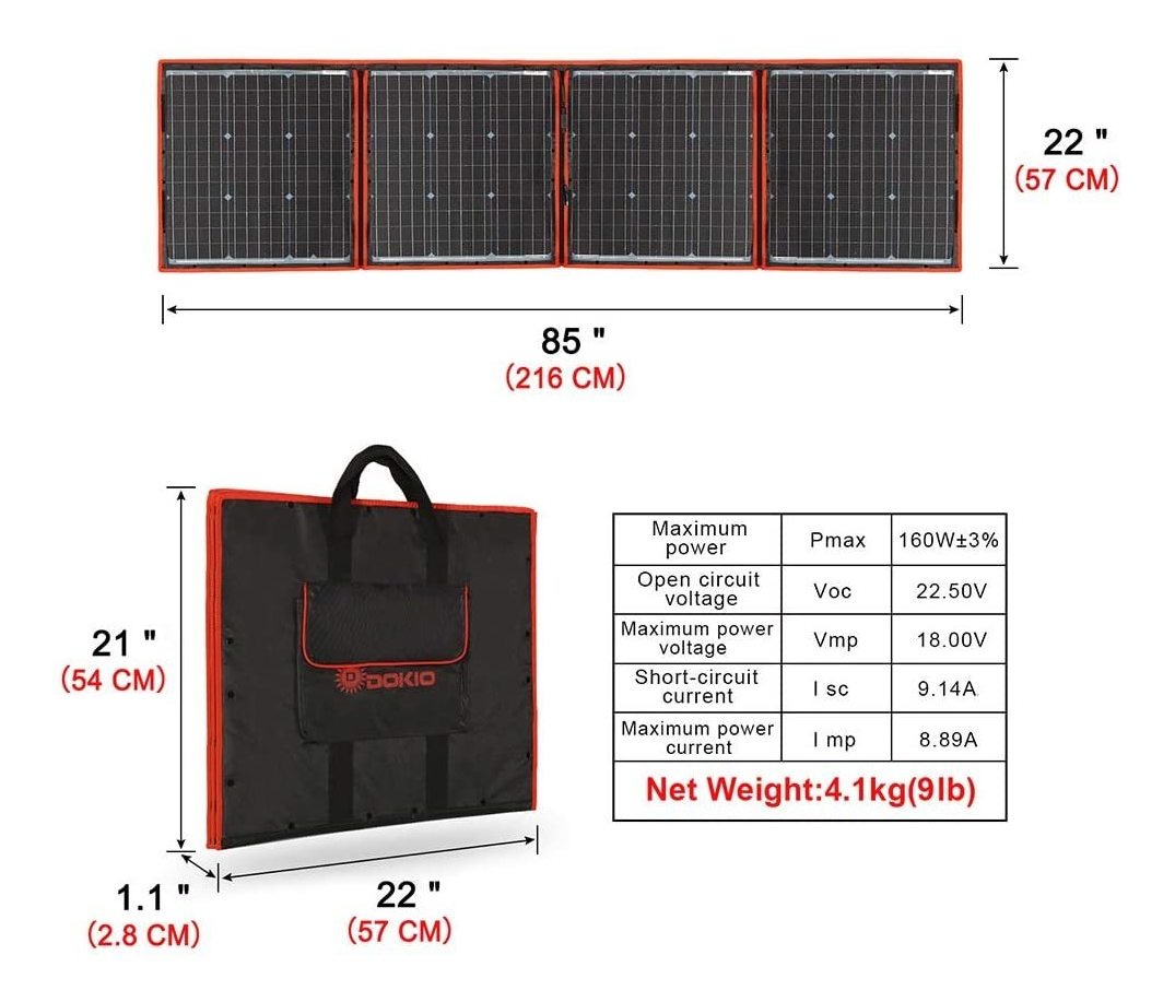 Specification: Dokio 150 Vatios Panel Solar Monocristalino El Kit Portátil