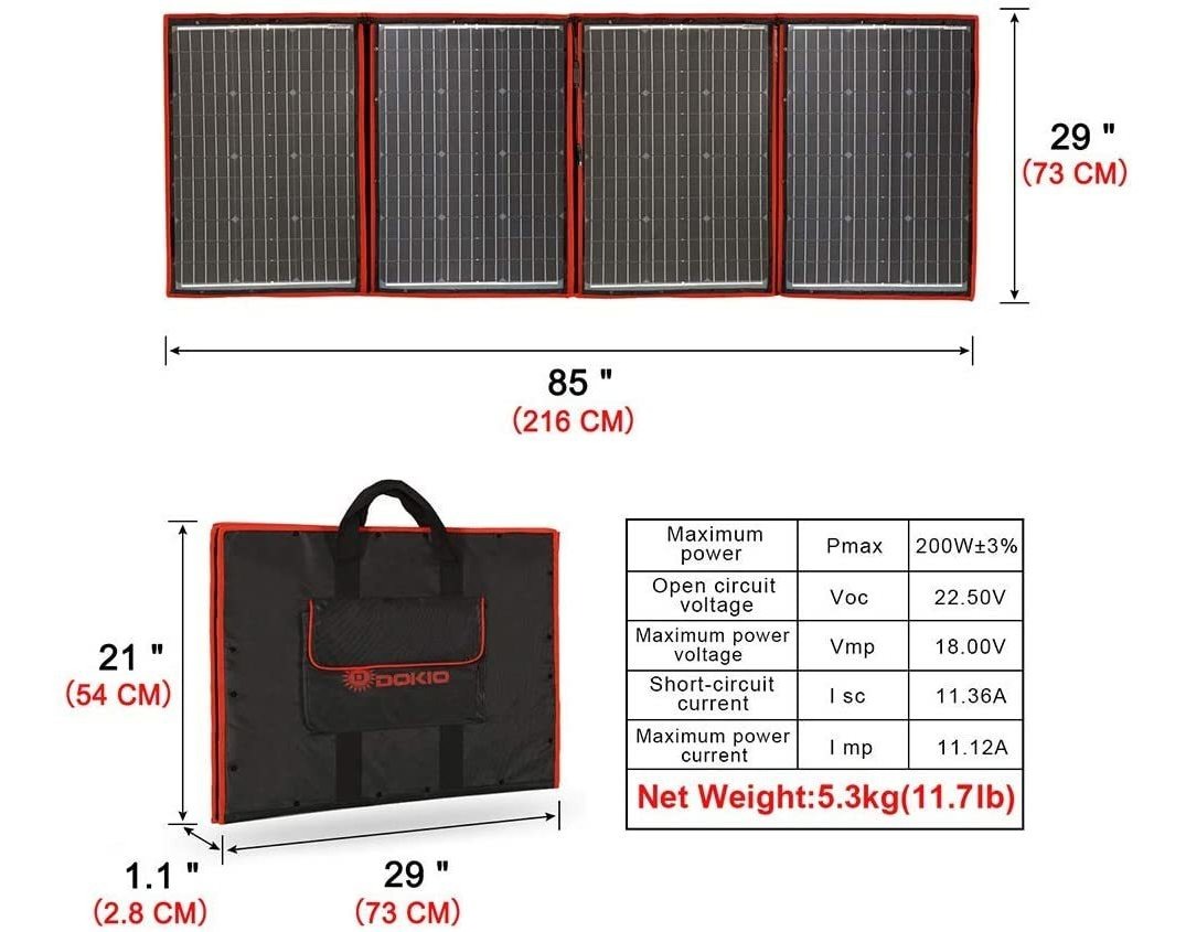 Specification: Dokio 200w Plegable Del Panel Solar Kit De Peso Ligero (11 L
