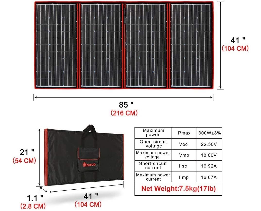 Specification: Dokio 300w Kit De Panel Solar Portátil (41x21inch) Plegable