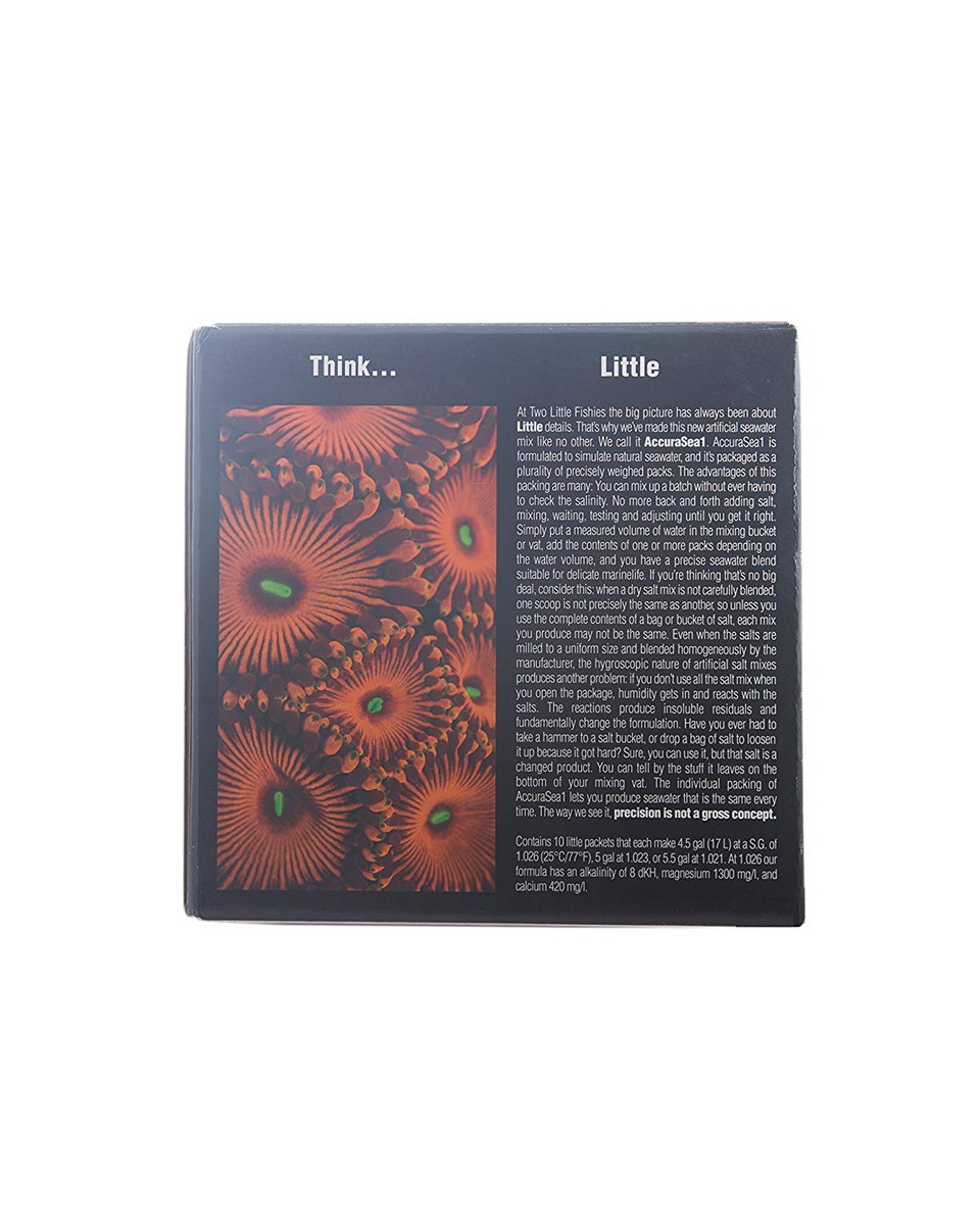 Dos pececitos AccuraSea1 agua de mar Mix 50 gal AccuraSea1 se embala en una pluralidad de paquetes cuidadosamente pesados ¿¿para que sea más fácil de producir una solución de agua de mar precisa cada vez .; 50 galones SALT MIX; Contiene diez bolsas de 5 galones Todos nuestros productos estan en inglés SKU 24041906751