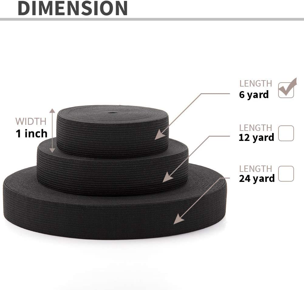 Dreamlover elástico 1 pulgada, bandas elásticas negras para cierre, 6 yardas
