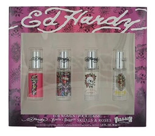 Ed Hardy Eau de Parfum Spray, .25 onza / 7,5 ml; Ed Hardy Corazones y dagas Eau de Parfum Spray, .25 onza / 7,5 ml; Ed Hardy cráneos y rosas Eau de Parfum Spray, .25 onza / 7,5 ml; Ed Hardy Villain Eau de Parfum Spray, .25 onza / 7,5 ml; Debido a los cambios de fabricante, el embalaje puede variar de la imagen se muestra arriba. Embalaje de este producto puede variar de la imagen se muestra arriba. Todos nuestros productos estan en inglés SKU 12062106339