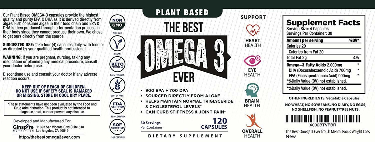 Especificaciones: El Mejor Omega 3 Siempre De Estrés A Base De Plantas De Alga
