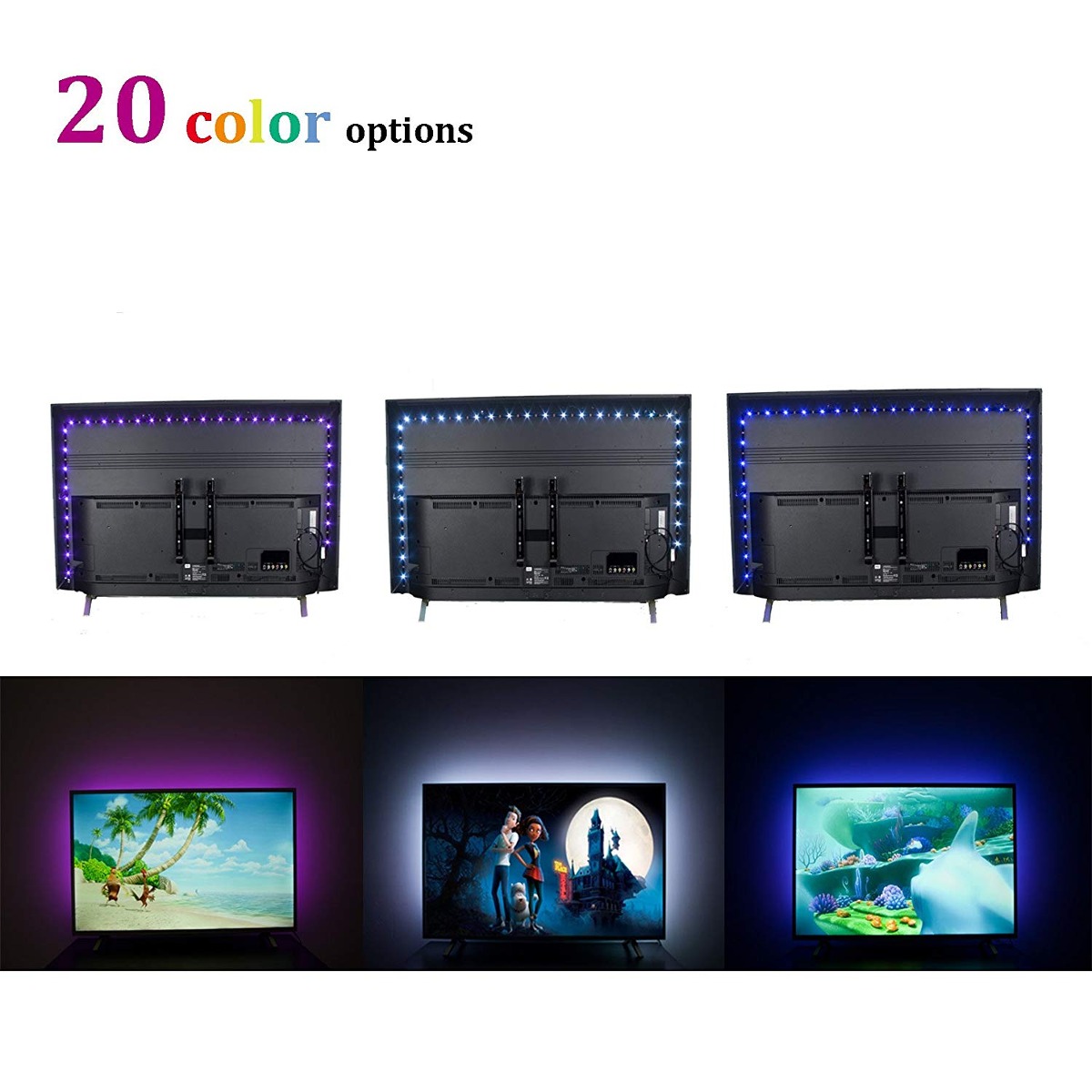 ¿Más brillante de luz de fondo LED TV¿ Eppie BÁSICO adoptan alto lumen chips de LED, pantalla Super brillante efecto visual, hasta 20 opciones de color y modos múltiples dinámicas, que sea sencillo de personalizar su cine en casa .; ¿Sincronización de encendido / apagado con TV¿ La televisión llevó luces con el puerto USB de la TV, sincronizar ON / OFF con la mayoría de los televisores. Por favor, compruebe el televisor salida USB antes de su uso (Entrada Requerido: 5V, 1A) .; ¿Fit 32-60 «TV¿ Puede muy bien cubierta superior, inferior y laterales de 32/40/42/43″ TV, la parte superior y los lados de la TV 50/60» . Por favor, consulte la cuarta imagen para planificar su ruta, longitud de la tira de LED : 4pcs 1.64ft .; ¿¿ fuerte espuma adhesiva Después de la investigación, hemos aprendido que la mayoría de TV LED tiras en el mercado tenían débil cuestión cinta adhesiva, así que utilizamos espuma adhesiva de 3M VHB para garantizar que no se preocupe del mismo problema; también ofrecemos 1- garantía de un año para la cinta .; ¿tranquilizado post-venta¿ por favor, compra con confianza, EPPIEtec ofrece garantía de un año en las luces de la televisión LED RGB. Fácil acceso a la atención al cliente también está aquí para usted 24/7 Color: color con control remoto