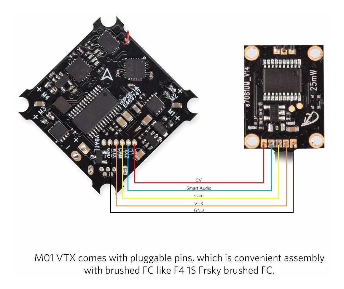 El transmisor 25 mW BETAFPV Z02 AIO cámara 5.8GHz 600TVL M01 VTX NTSC / PAL con 25 y 35 grados de montaje de cámara OSD SmartAudio para Tiny chillido Drone Como Beta65S chillido (Pin-Conectado Version) soportes de cámara ¿Z02 AIO Cam M01 VTX¿ El Z02 FPV AIO NTSC y PAL, la frecuencia y potencia de 25 mW VTX es, no ajustable, también es compatible con SmartAudio; ¿¿ Fácil de instalar El M01 viene con VTX enchufable Pins, que es el montaje práctica y cepillado FC, sólo tiene que enchufar y jugar. Cortar las patillas más cortas hará que sea más fácil de instalar; ¿Adecuado¿ cámara El Z02 AIO M01 VTX es adecuado para cepillado o 1S sin escobillas drone chillido como Beta65S; ¿¿ cámara Rendimiento BETAFPV Z02 AIO M01 VTX viene con 25 ° y 35 ° soportes para cámara. Diferentes opciones para volar en una velocidad inferior a 25 ° de inclinación montar o vuelo de alta velocidad con 35 ° de inclinación de montaje; ¿¿ Peso Sólo pesa 3,2 g con M01 VTX, ligero con el pequeño tamaño de 18 mm * 14 mm * 4,5 mm. que aportan experiencia inesperada vuelo Todos nuestros productos estan en inglés SKU 8111901574