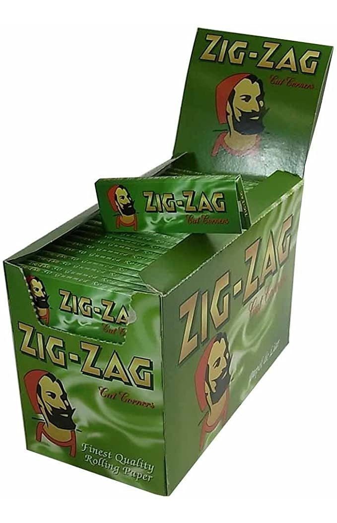 El zigzag verde, puro Goma de papel y árabe Natural regular; Cortar las esquinas, de combustión lenta; 50 hojas por paquete, caja contiene 100 paquetes; Tamaño: 70 mm x 36 mm Papel de liar Rizla Todos nuestros productos estan en inglés SKU 8112010689